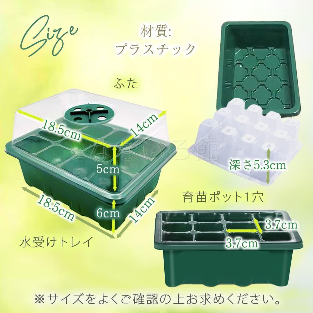 【サイズ】 水受けトレイ:横18.5cm 縦14cm 高さ6cm 育苗ポット1穴:横3.7cm 縦3.7cm 深さ5.3cm ふた:横18.5cm 縦14cm 高さ5cm ※サイズをよくご確認の上お求めください。