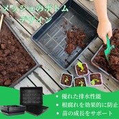 苗床トレーメッシュボトムデザイン:メッシュボトム栽培トレーの底には、植物に最適な排水と通気性を提供し、根の成長のためのスペースを作るために、均一な密度のメッシュ穴が多数あります。余分な水が通り抜け、根の成長を訓練するための十分なスペースがあり、土壌ブロックやロックウールキューブに最適です。