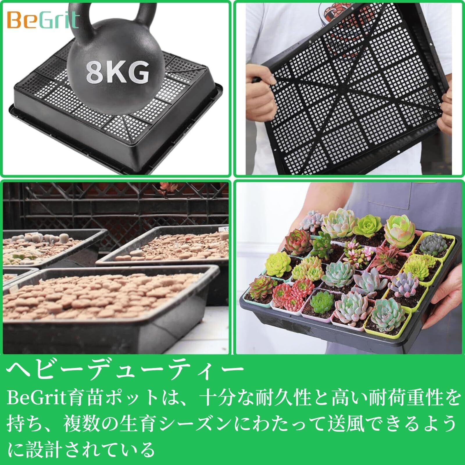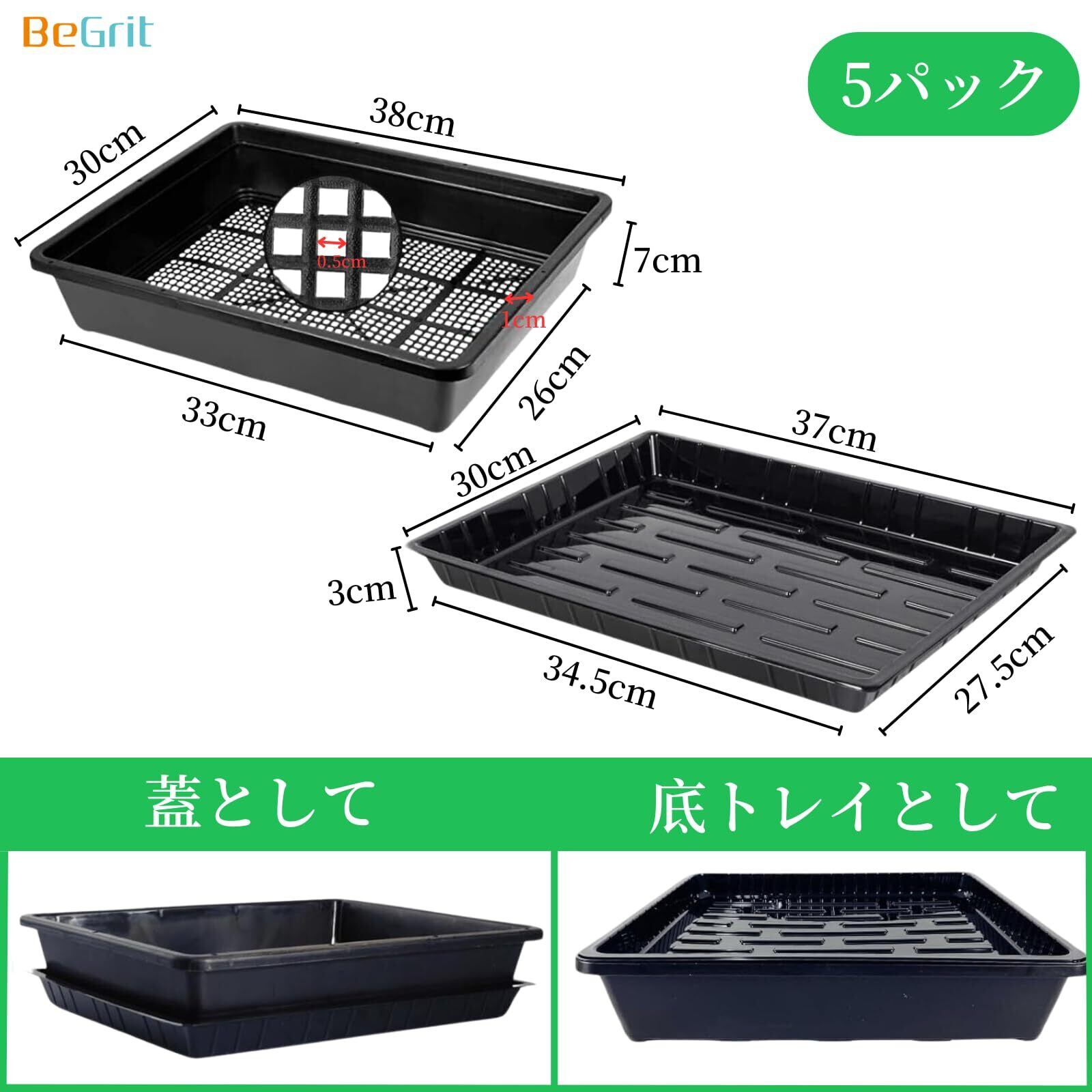 【2025最新】BeGrit 育苗ポット 育苗トレー 5枚 38x30cm 育苗コンテナ 育苗トレイ育苗箱 苗床 トレイ稚苗用苗箱 盆栽トレーニングポット, 5枚37x30cm多肉植物輸送ポット家庭園芸管理用(合計10枚ブラック)