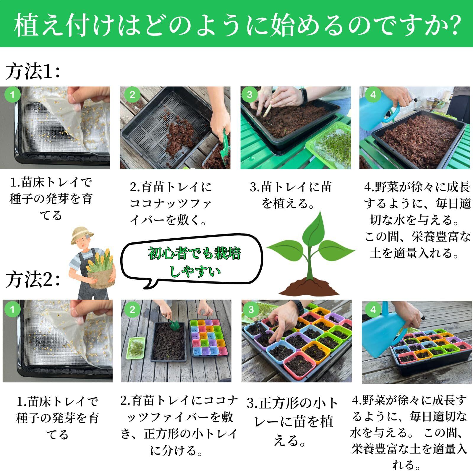 園芸 作業トレイ-シンプルで効率的 - 植物の発芽ディスクは、浅く広い正方形構造で設計されており、根球を統合するための容量が大きく、通気性がよく、少ない土と培地で。マイクログリーンを簡単に収穫できます。