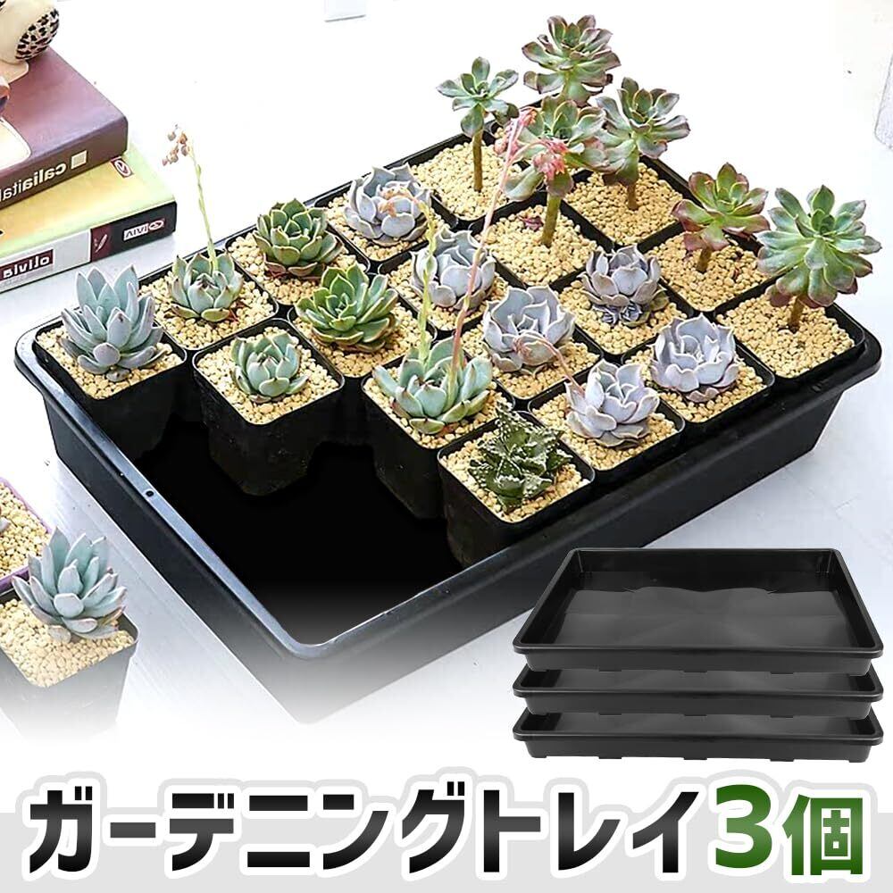 ガーデニングトレイ プランター受け皿 運搬 育苗 植え替え 飛び散り防止 水洗い 3枚セット (トレイ ブラック)