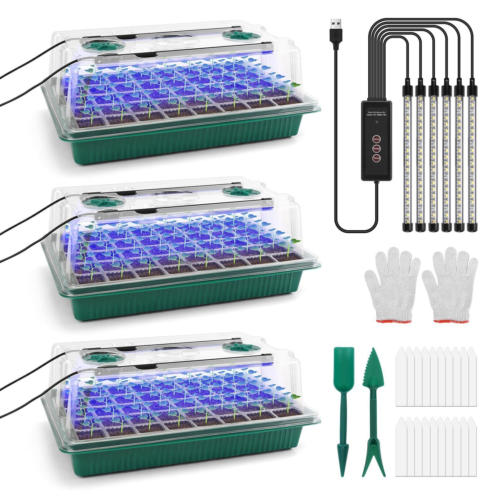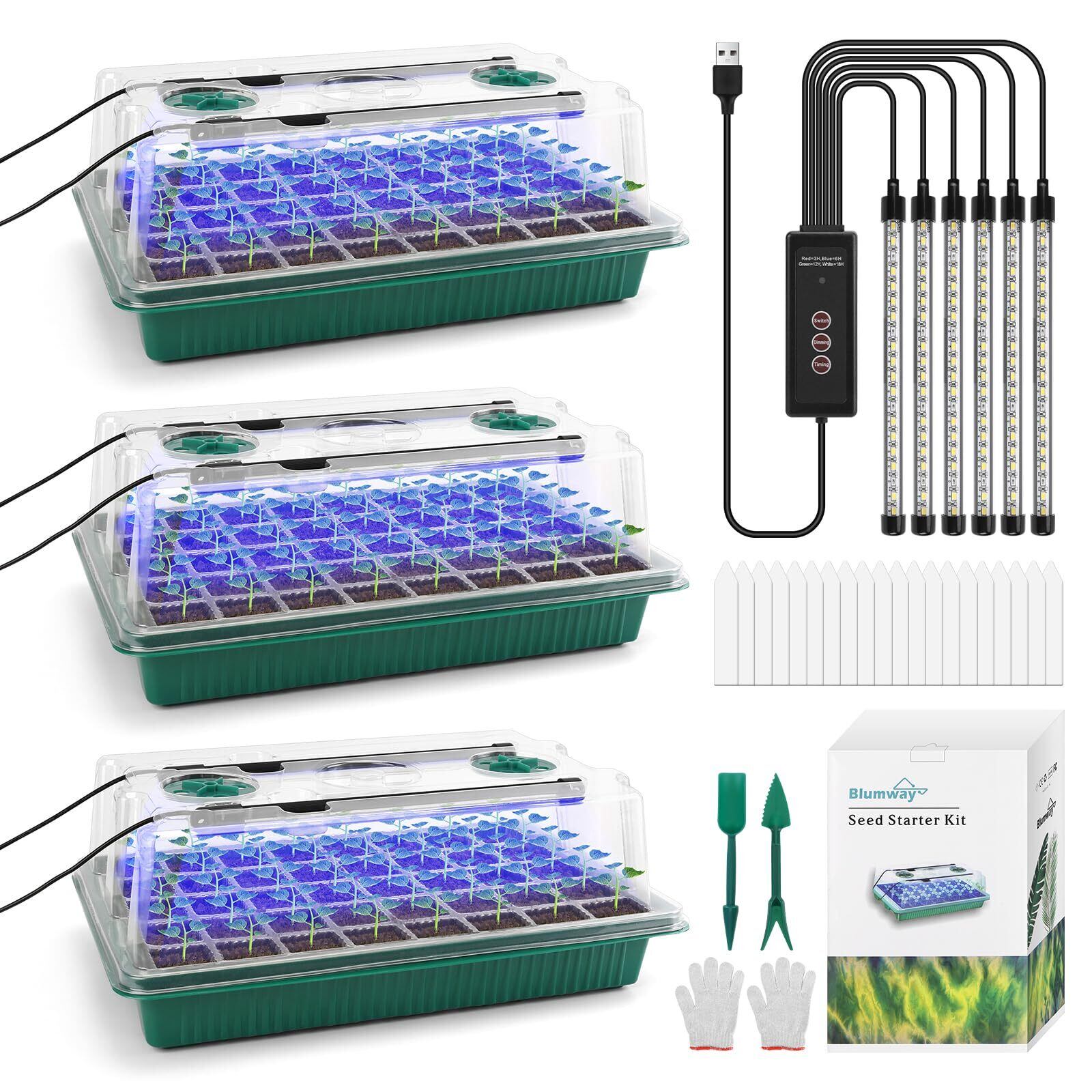 BlumWay 育苗ポット植物育成ライト付き 3個セット 40穴 育苗箱 発芽•育苗セット 種まきハウス 湿度・温度管理 通気性 耐久性 園芸 植物栽培 園芸/植栽/庭園
