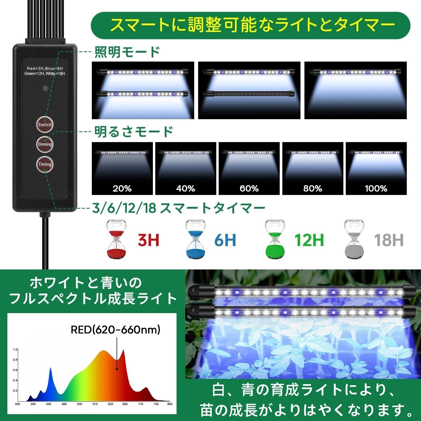 【健康で効率的な成長】私たちの種子スターターキットは、さまざまな植物の苗の小さな種子の成長に理想的なサイズです。野菜、イチゴ、花、果物、その他の植物にも使えます。光の品質、強度、週期を人為的に制御できます湿度、温度、植物は常に最適な生育環境に置かれ、効果的に生育時間を短縮し、作物の収量と品質を高めます。