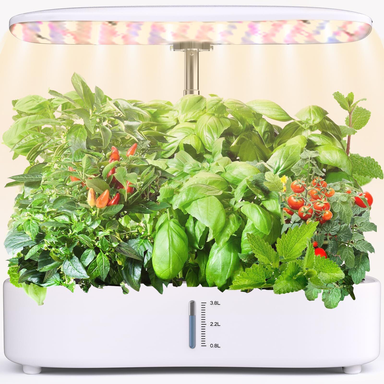 水耕栽培キット、LED植物成長ライトとスマートディスプレイを搭載し、簡単に操作できます。自動水循環システムとタイマー機能により、3つの栽培モードが提供され、12種類の植物を栽培できます。栽培キットの高さと照明明るさは、植物の成長段階に応じて調整可能。これにより、植物に最適な生育環境を提供します (ホワイト)