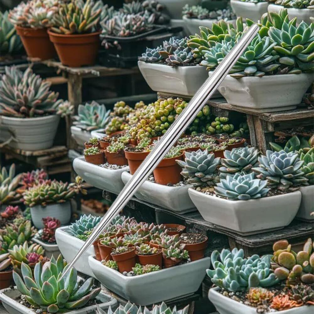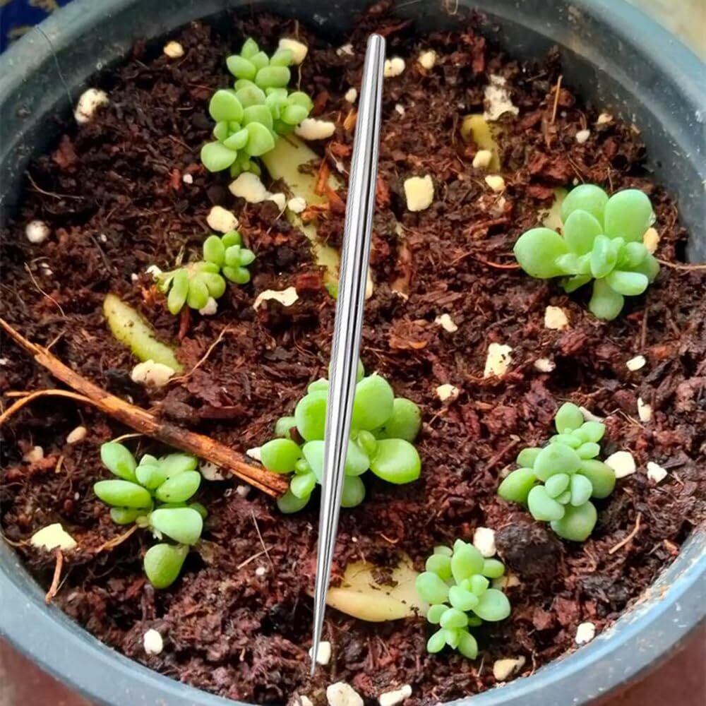この不錆鋼とアルミ製の棒は、盆栽の根の整理や土を固める際に使用できます。