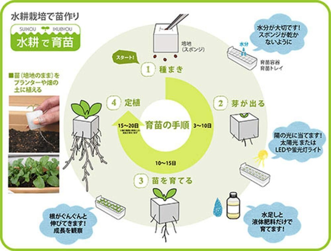 『リビングファーム水耕栽培で育苗の特長』