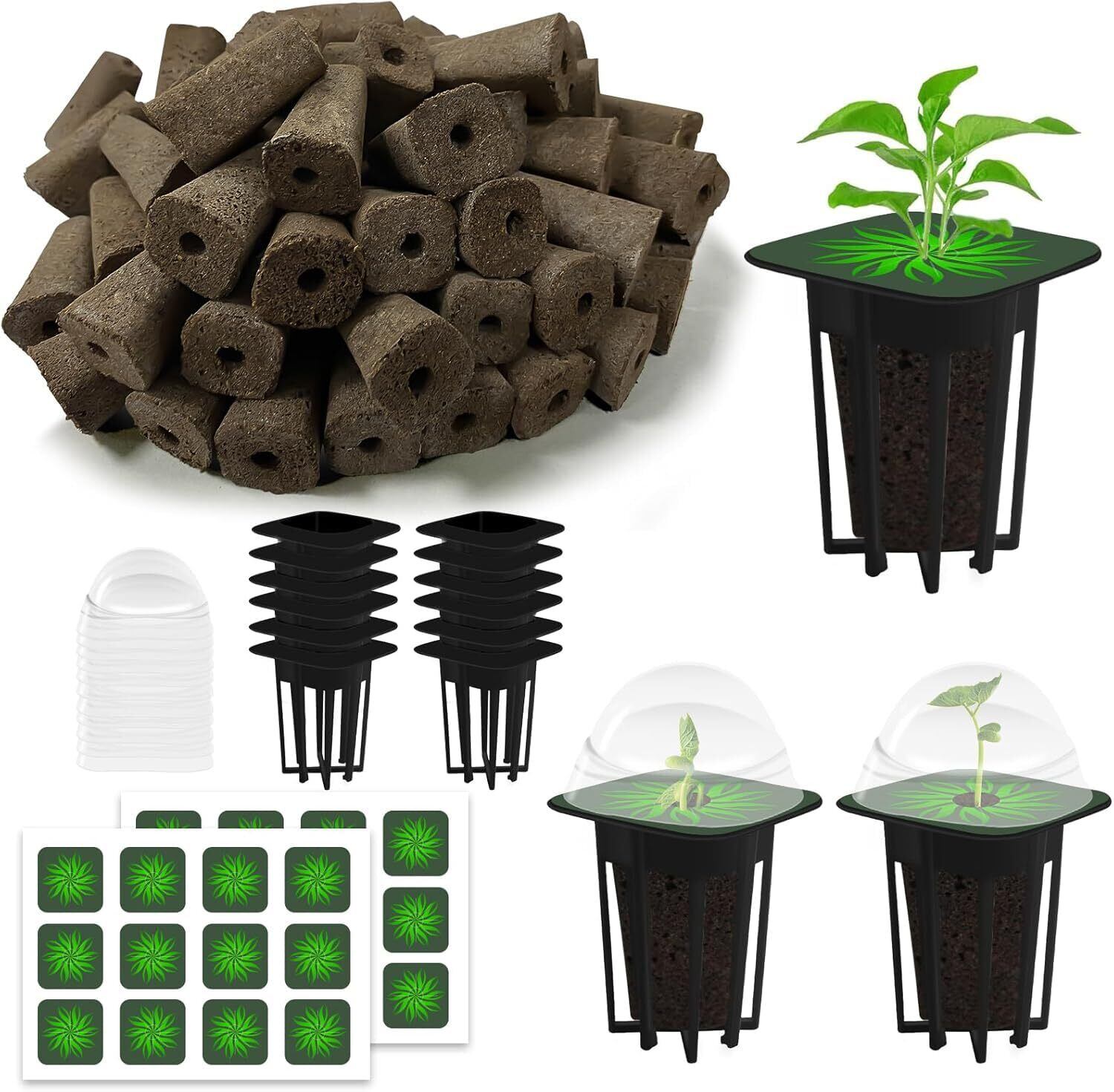 充実した栽培キット:72点式ガーデンキットには、24個の栽培スポンジ、24個のシードラベル、12個の植えかご、12個の育苗ドームが含まれており、水耕栽培システムに必要な全てを提供します。(植えかごと育苗ドームは繰り返し使用可能)