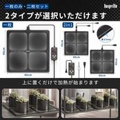 【温度センサー付き、1℃刻みの温度調整】ディスプレイコントローラーにて、2種類の温度調整方法があります。1.温度調整範囲5-45℃で1℃/段階、方法2.出力調整範囲10-100%で10段階(38W/枚、1枚で100%の場合は38W×100%=38W)です。単品タイプは温度センサーが内蔵し、2in1タイプは1個の温度センサーが外部に付属しています。センサーによって温度差は±1℃と予想され、育苗環境を細かく最適化いただけます。【ご注意】設定した温度は発熱温度であり、ヒーターマット表面温度ではありません。ヒーターマット表面温度は外部環境によって異なります。