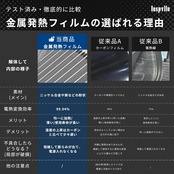 【金属発熱フィルム採用、加熱は均一かつ安全的に】今まであまり見えない金属発熱フィルを採用しており、従来品の電源線タイプとカーボンフィルムタイプと比べては、すばやく加熱や、全体へ均等に熱を伝えることはもちろん、一番大事な安全性を改善しました⇒カーボンフィルム:内部破損しても加熱し続けて、最悪の場合は火事になる可能性があります。また、IP67防水・耐熱、衝撃と摩耗に強い多層構造なので、高温環境のご使用でも心配なく、漏電やショートによる火災リスクを防ぎます。