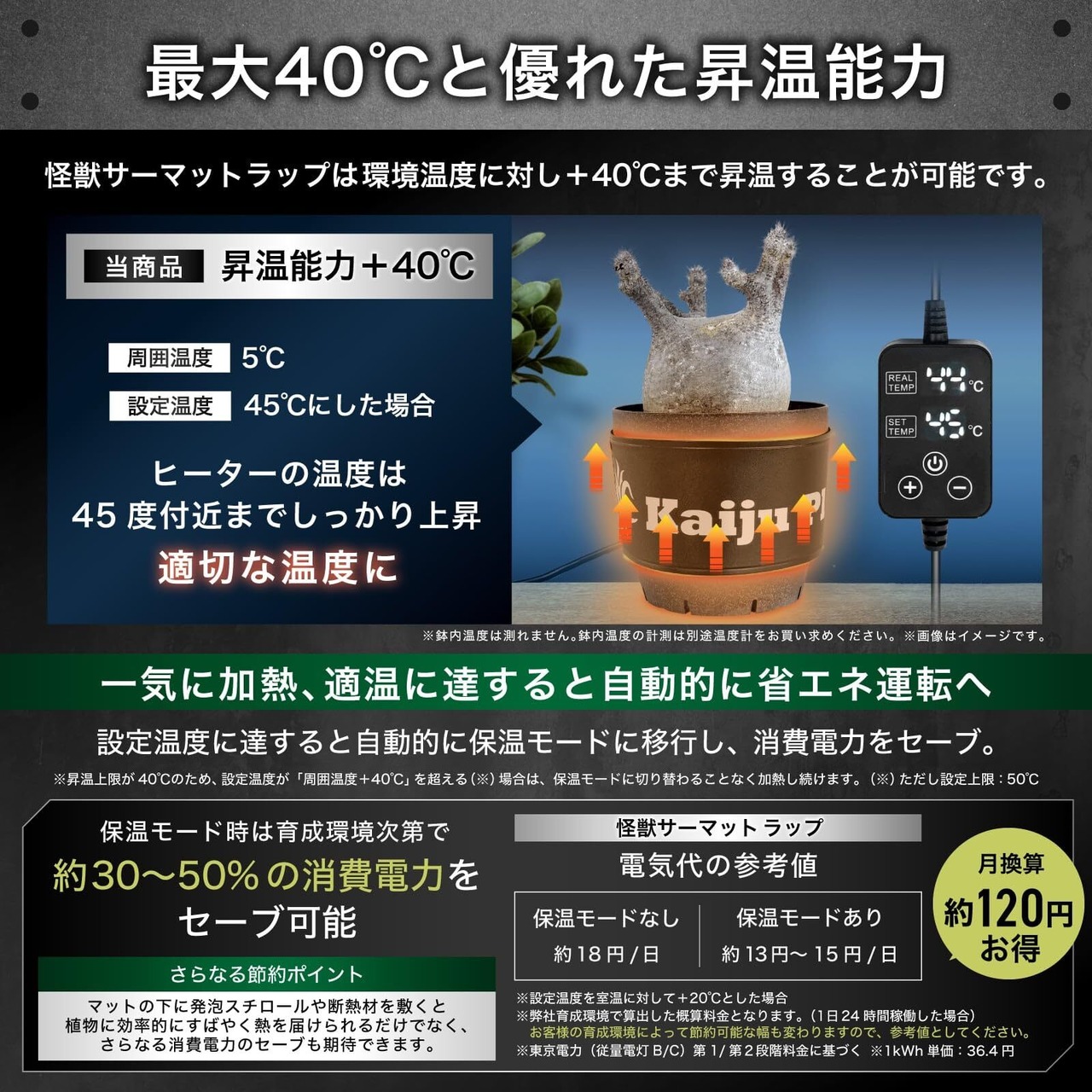 【スマート電源に対応】メモリ機能搭載でコンセント側電源をオンオフしても自動復帰します【爬虫類にも】レオパなどの爬虫類育成にもお使いいただけます。