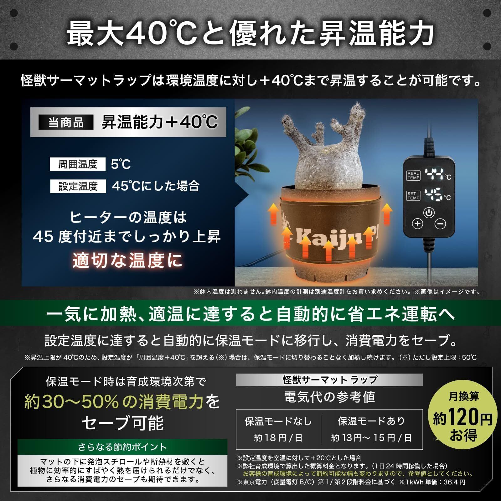 【大切な植物を寒さから守る】Kaiju Plant 育苗用ヒーターマット。冬場の育苗や発根管理に最適です。寒さから植物を守り、冬場の育成をサポートします。ハイパワー仕様で気温に対して約40℃昇温可能。