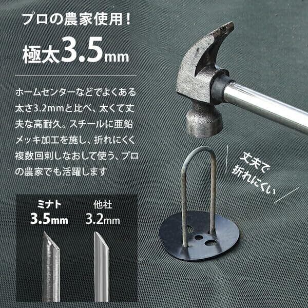 【在庫限り】ミナトワークス 極太3.5mm Uピン杭+緑丸付き 30cm 100本セット (グリーン/防草シート用)