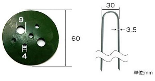 ミナトワークス 極太3.5mm Uピン杭+緑丸付き 30cm 100本セット (グリーン/防草シート用)