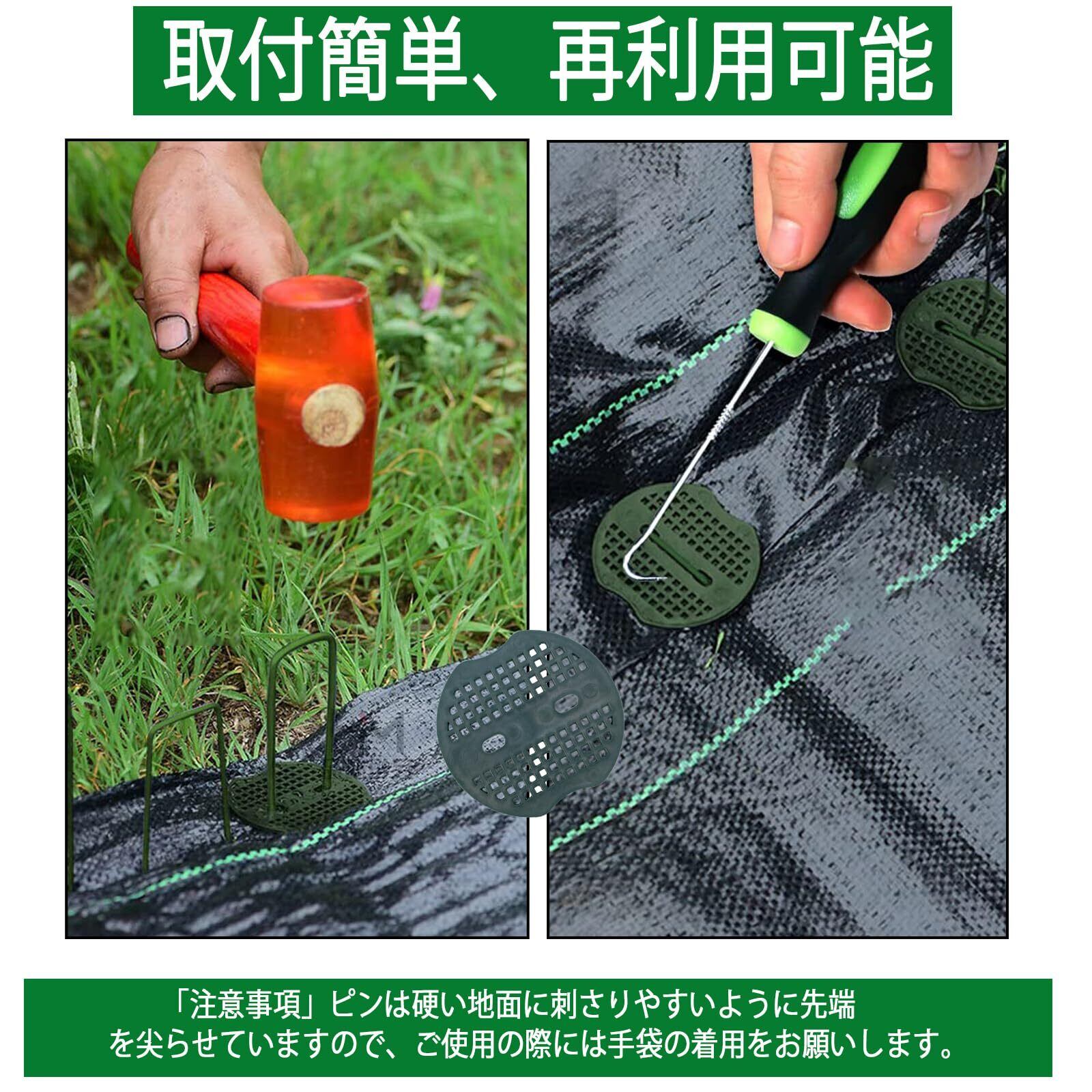 【幅広い用途と多様な素材への対応】 Uピンは防草シート、人工芝、農業用防虫ネット、不織布、ビニールマルチなどの施工・固定に使用できる多機能な製品です。庭園、農業、キャンプなど幅広い用途に適しています