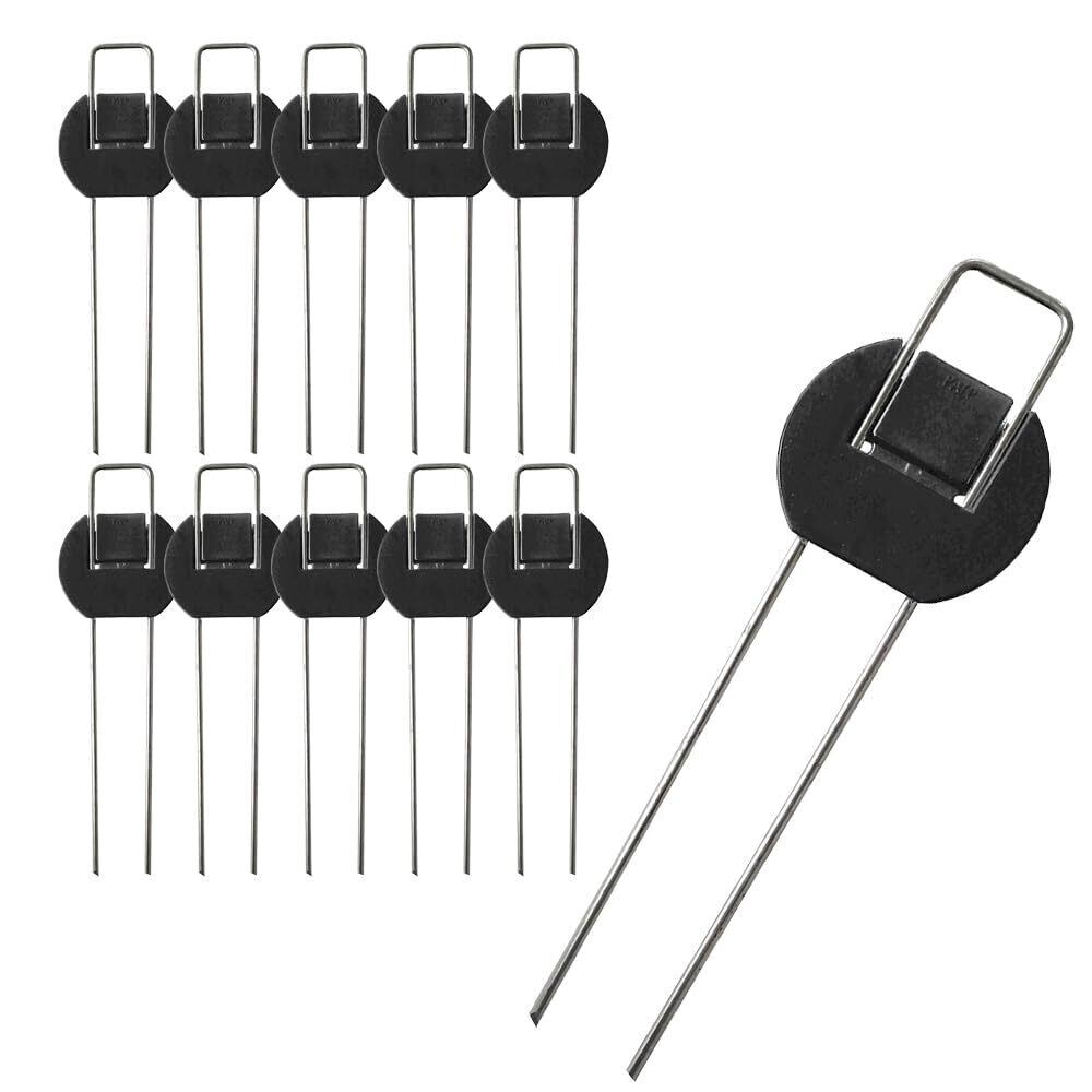 ■【特徴】コの字ピンと押さえ板が一体になった、作業効率のいい押さえピンです!これまで面倒だった、ピンと押さえ板を併せる作業が無くなります!フラットタイプではコの字ピンを採用!Uピンタイプと比べ、凹凸が少なく見た目もすっきり!凹凸部分に土が溜まって、そこから草が生えてくることもなくなります! ■【本体サイズ】(約)長さ:20cm 本数:10本入り ■【用途】防草シートなどの押えに ■【材質】ピン:鉄 押さえ板:PE