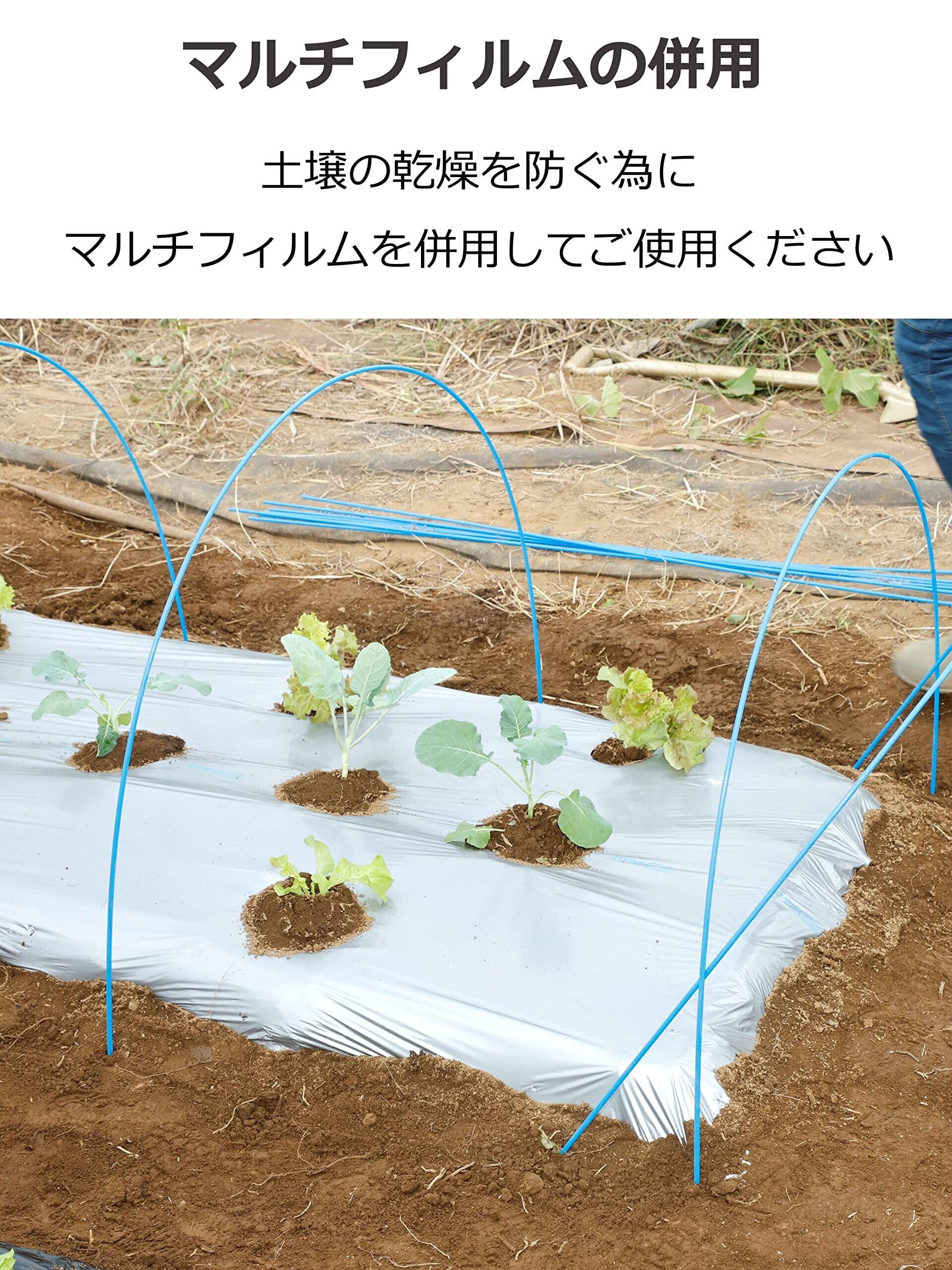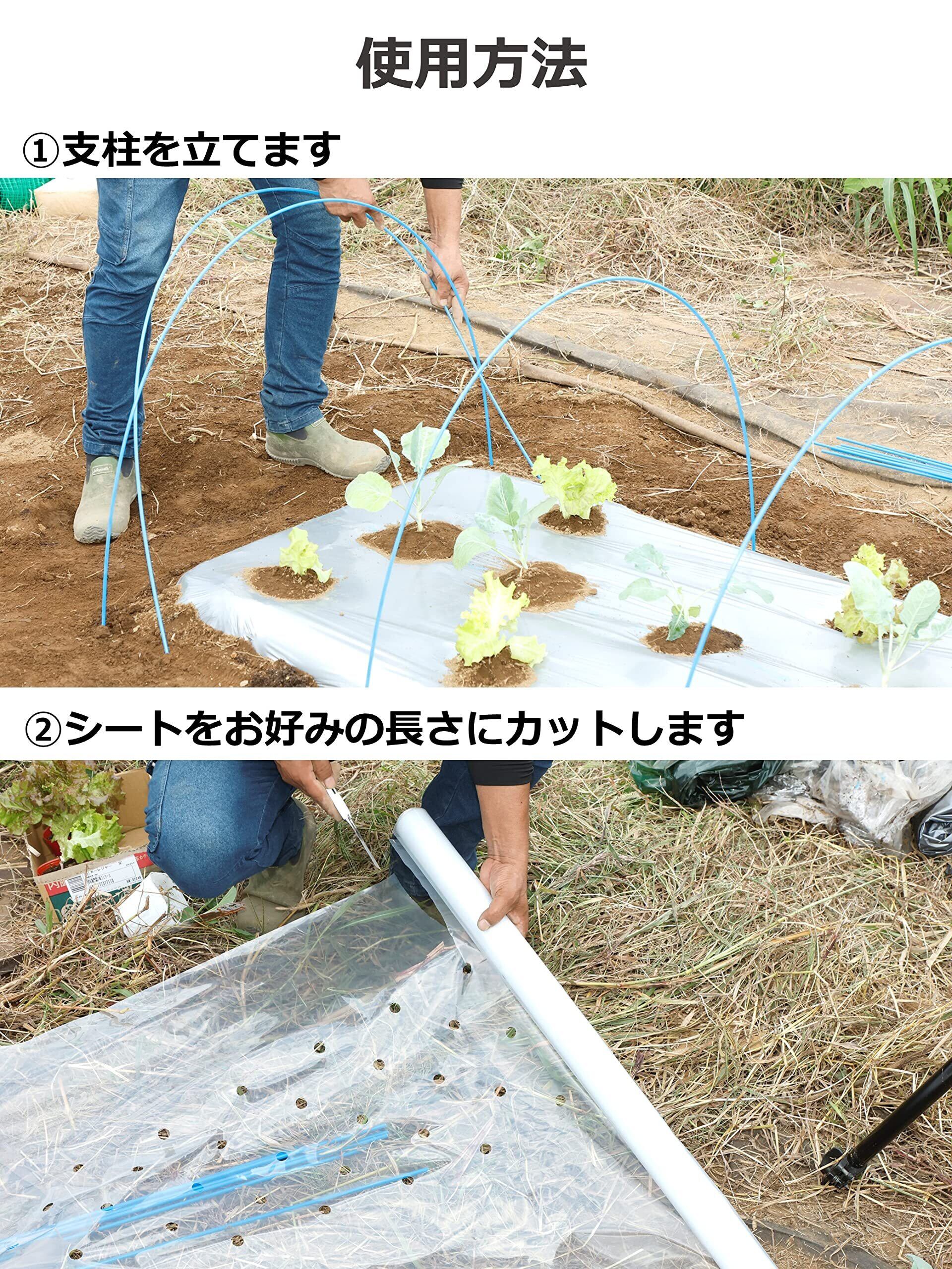 フィルムが作物に直接触れると葉焼け等のリスクが高まります。必ず支柱を立てて、トンネル栽培としてください。