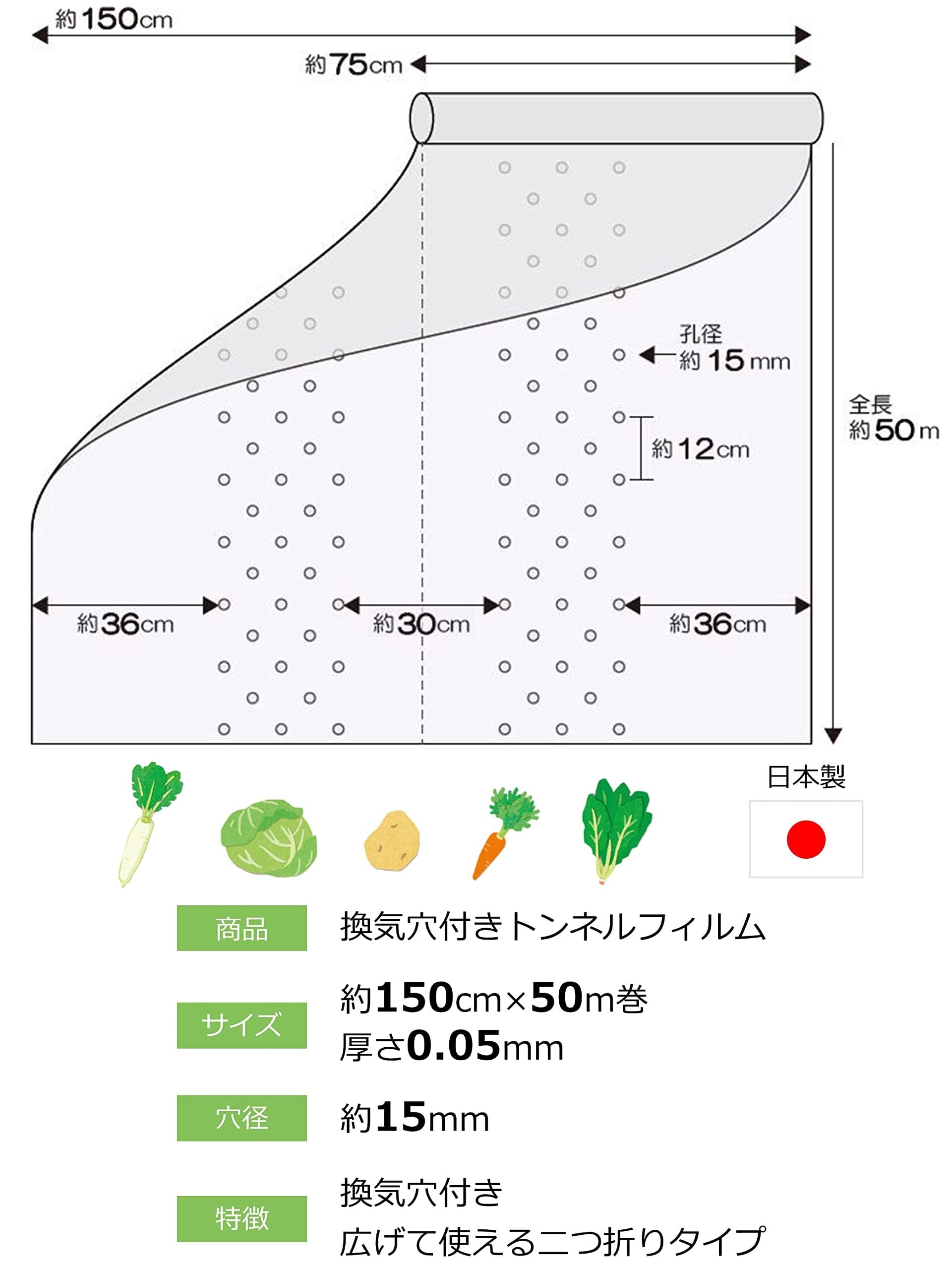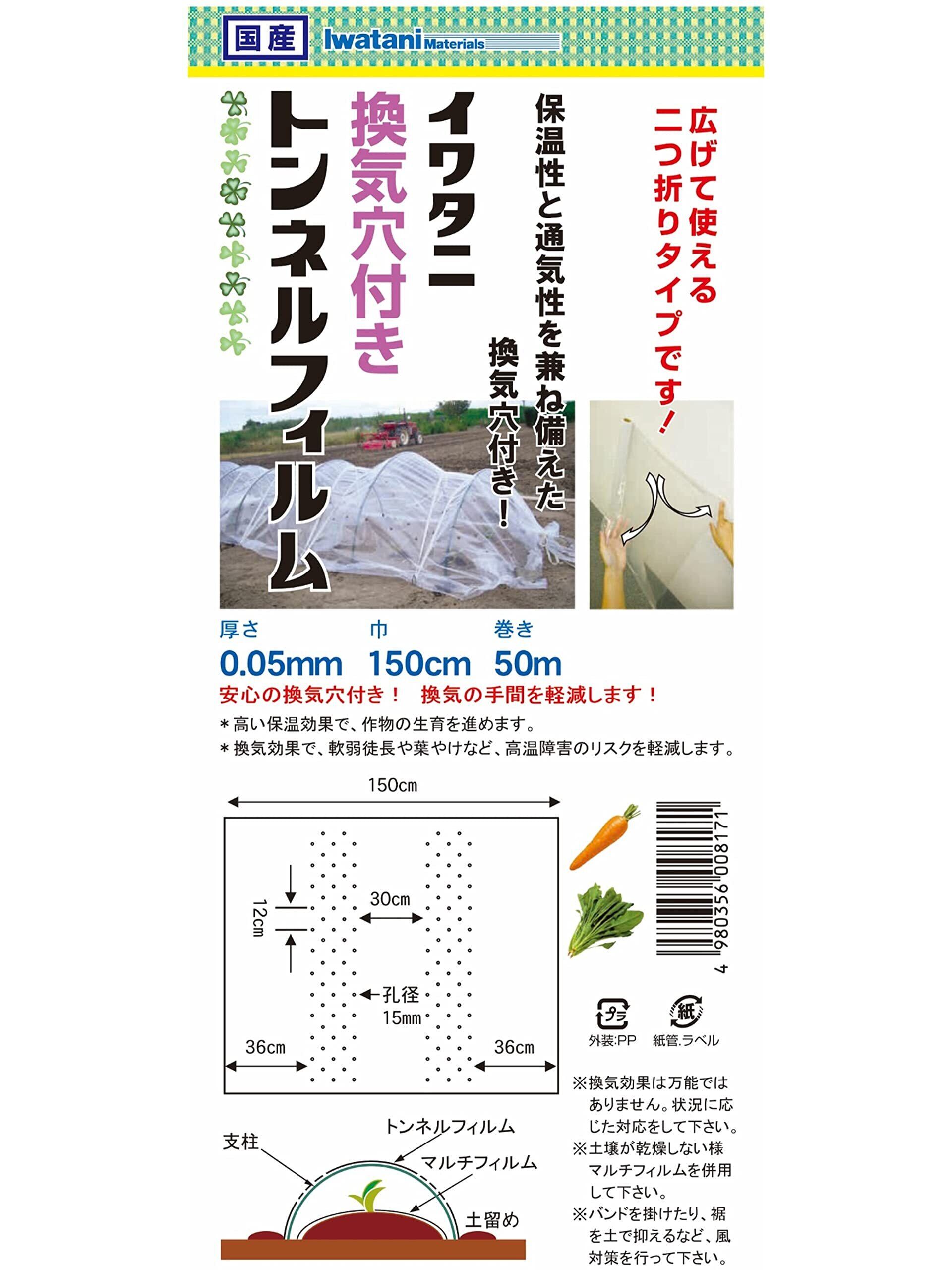 【数量限定】岩谷マテリアル イワタニ菜園用換気穴付トンネルフィルム 0.05mmx150cmx50m 透明 二つ折りロール品 換気穴径15mm 保温資材 保温性 通気性 初期生育促進 高温障害リスク軽減 焼け防止 徒長防止 国産 プロ仕様