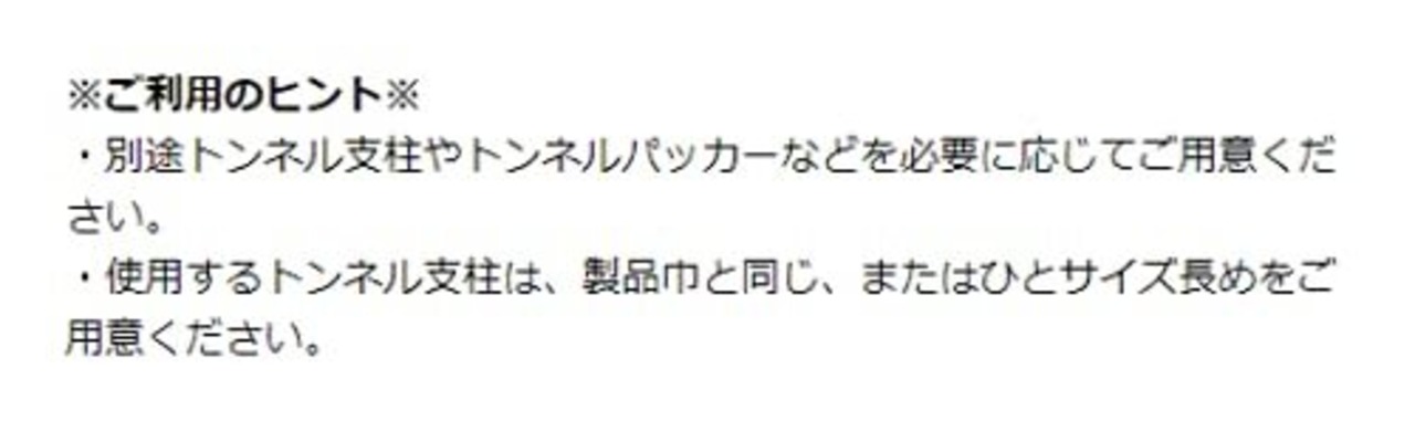 ・別途トンネル支柱やトンネルパッカーなどを必要に応じてご用意ください。