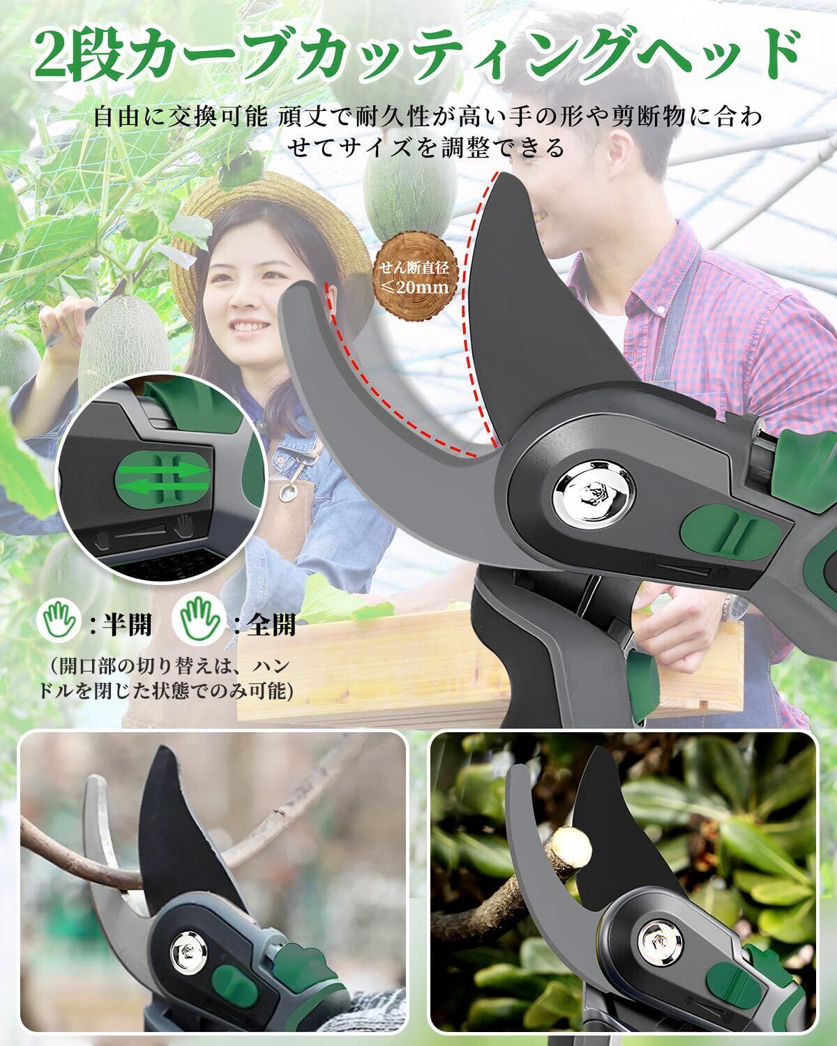 【開きの幅を調節可能】この植木鋏は剪断力調整装置が搭載されており、剪定ニーズに応じて刃の開きを自由に調整でき、異なる太さの枝も簡単に切ることができます。小枝から広葉樹の枝まであらゆるものを扱うことができます。