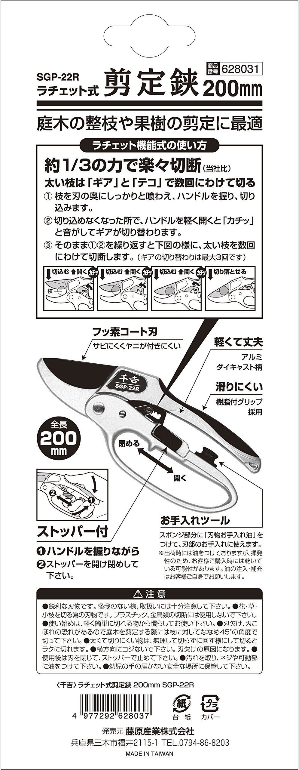 【特価セール】千吉 ラチェット式 剪定鋏 SGP-22R