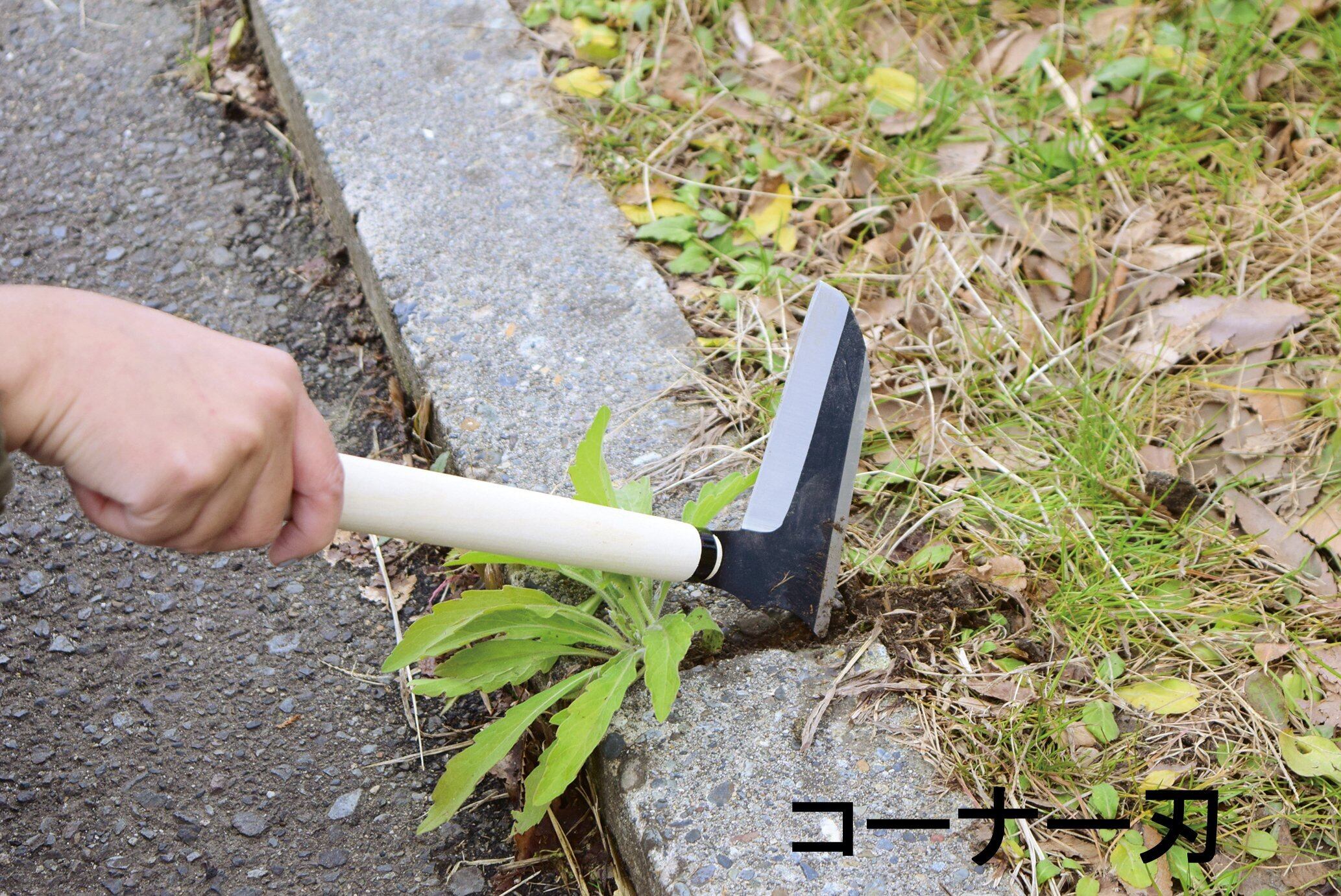コーナー刃でコンクリートのすき間も除草できる