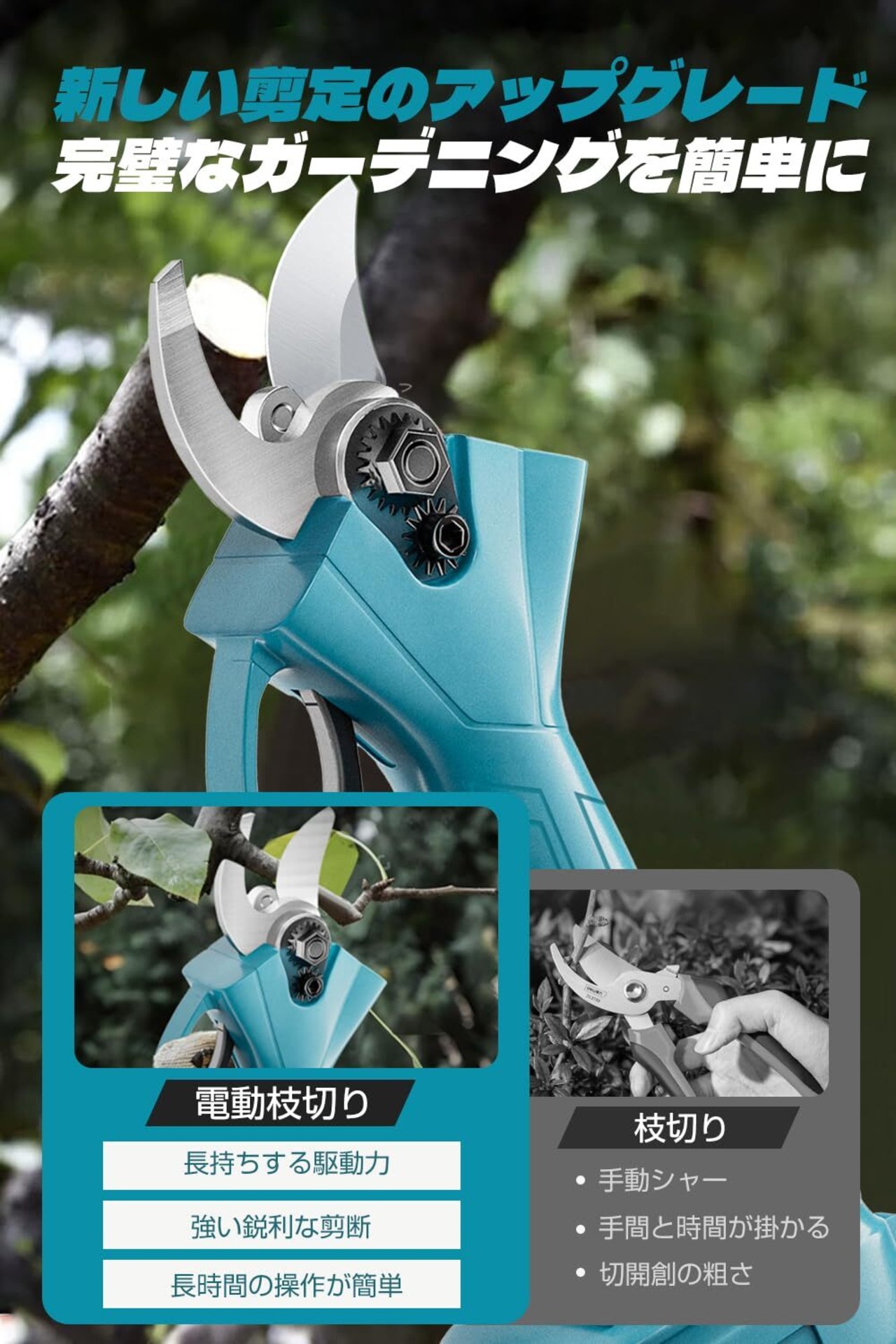【プロの園芸サポート】more cant 電動ハサミ 充電式 18v 剪定はさみ ブラシレスモーター 30mm直径切断 4段階開き角度調整可能 剪定バサミ 電動ばさみ 剪定鋏 枝切り 18V大容量バッテリー×2 4枚刃 軽量 剪定鋏 庭木/果樹/園芸 日本語取扱説明書付き