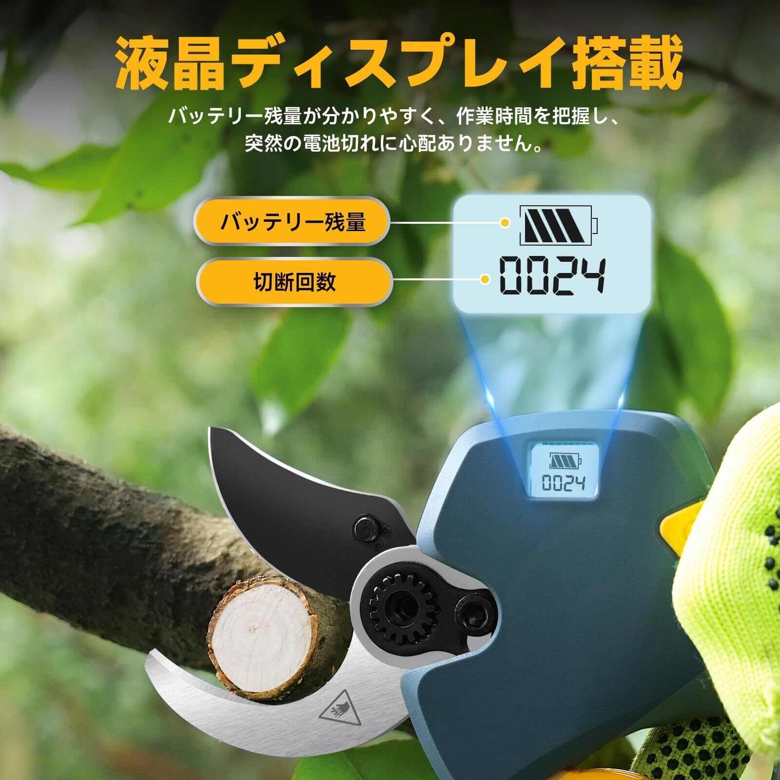 40mm切断径 電動ハサミ ポール付きセット【収納ケースなし】 電動剪定バサミ マキタ互換 2000Ah大容量バッテリー2個付き 剪定バサミ 電動 2段階開き角度調整可能 園芸ハサミ 切断回数と残量表示 LEDディスプレー ブラシレスモーター 日本語取扱説明書付き 充電式剪定ばさみ 品番:PR-E40 (鋏+ポール)