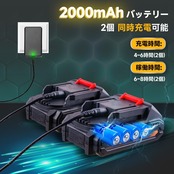 【18Vマキタ互換&バッテリー2個付属】電動剪定鋏には2000mAh大容量のバッテリーが2個付属し、付属の充電器は2個バッテリーを同時に充電可能です。合わせて4000mAhは8時間くらいの連続剪定作業ができます。また、マキタの18Vバッテリーと互換可能なので、マキタバッテリーをお持ちの方にとって便利でコスパが高い逸品です。