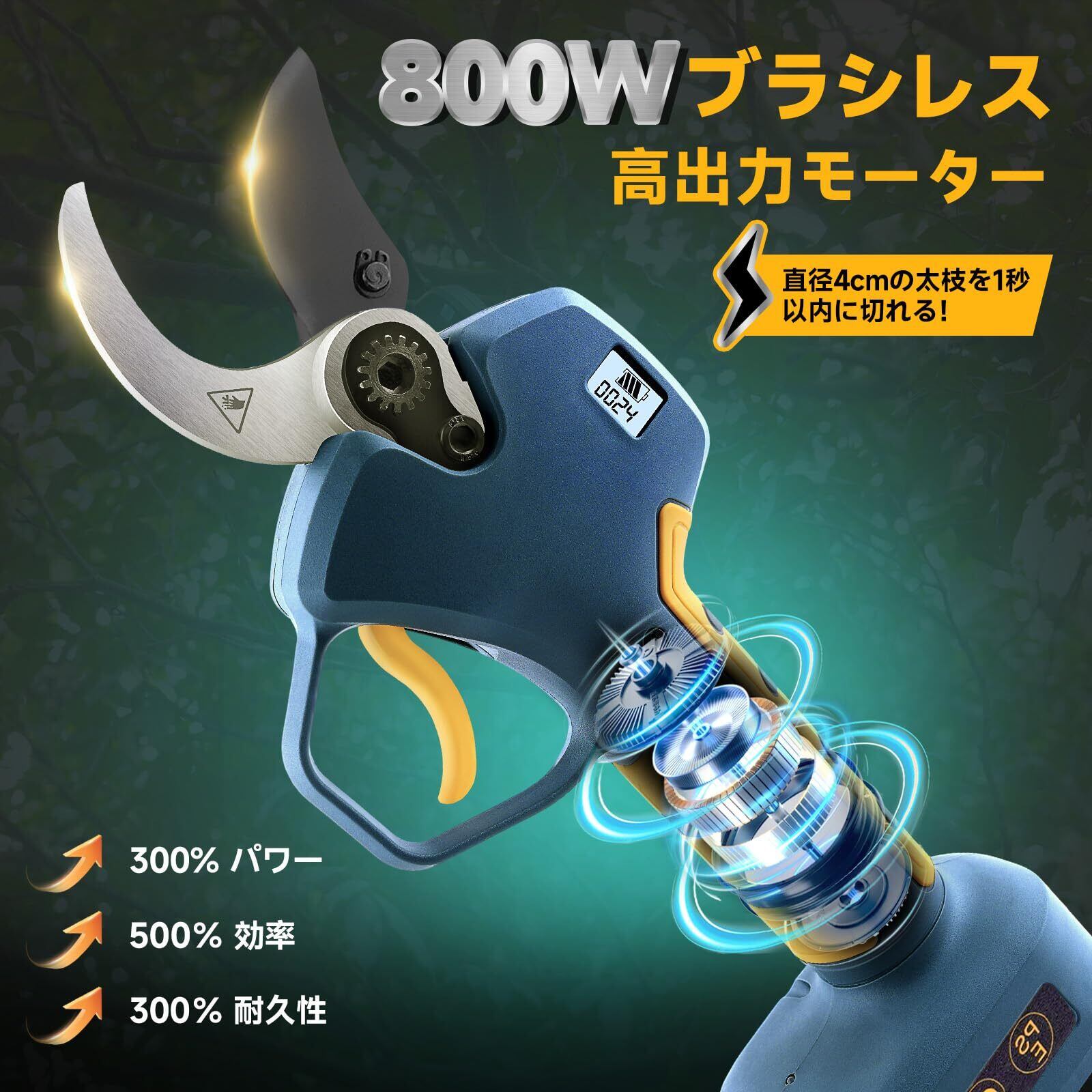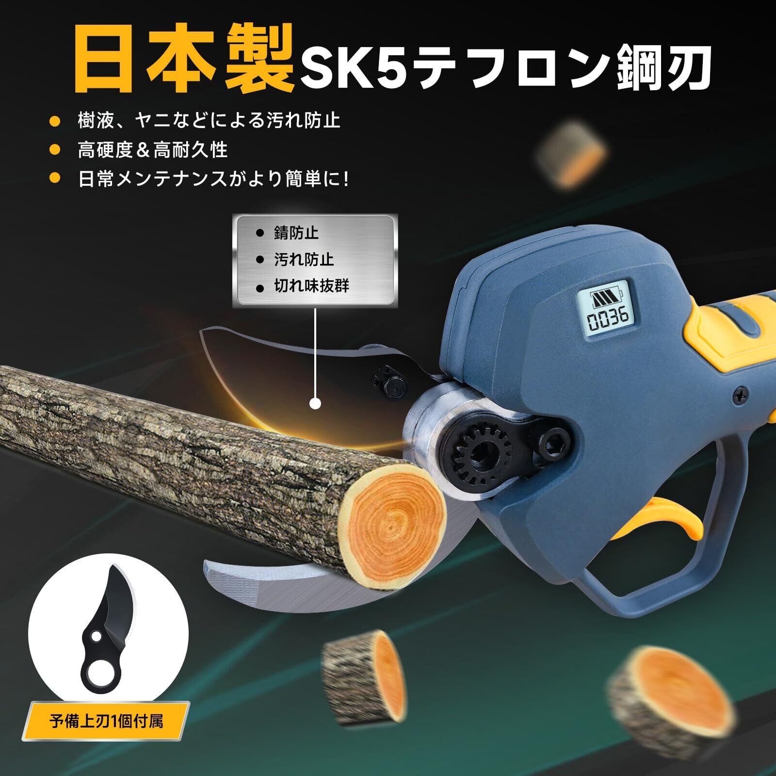 【日本製SK5テフロン高炭素鋼&ブラシレスモーター】日本製SK5テフロン高炭素鋼で作られたブレードとブラシレスモーターの組合せは高硬度でパワフル、切れ味抜群です。直径40mmまでの生木を1秒以内に瞬時切断でき、切断面がキレイで植木に傷みません。※予備上刃1個付属。