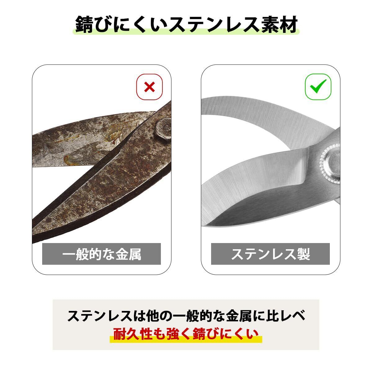 【高品質ステンレス製!】錆びにくく耐久性抜群 刃部分には高品質なステンレスを採用し、一般的な金属よりも耐久性が高く、錆びにくい設計。湿気の多い環境でも安心して使える剪定鋏。外での使用にも強く、長期間愛用できる枝切り鋏・花切りバサミです。