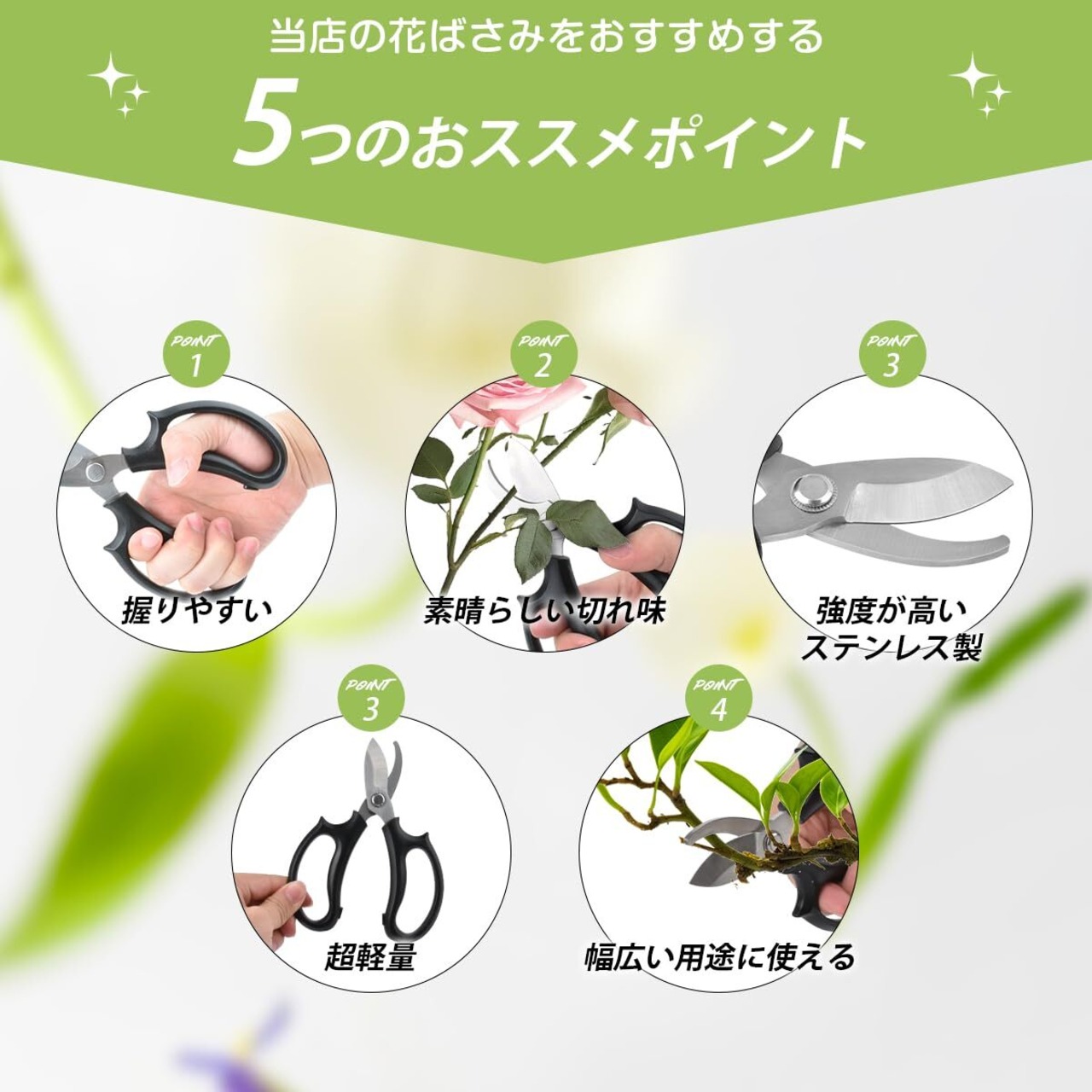 【園芸ハサミ 花切りハサ|付き】*ハサミを長期間、酸性環境や高湿度などの酸化しやすい環境に置くと、錆びる可能性もあるので、ご了承ください。日々ご愛顧され、心から感謝の意をいたします。初期不良はもちろん、ご万が一製品の不備などがございましたら、お気軽にお問い合わせください。 高品質の製品をお客様に差し上げられるように努力し続けております。