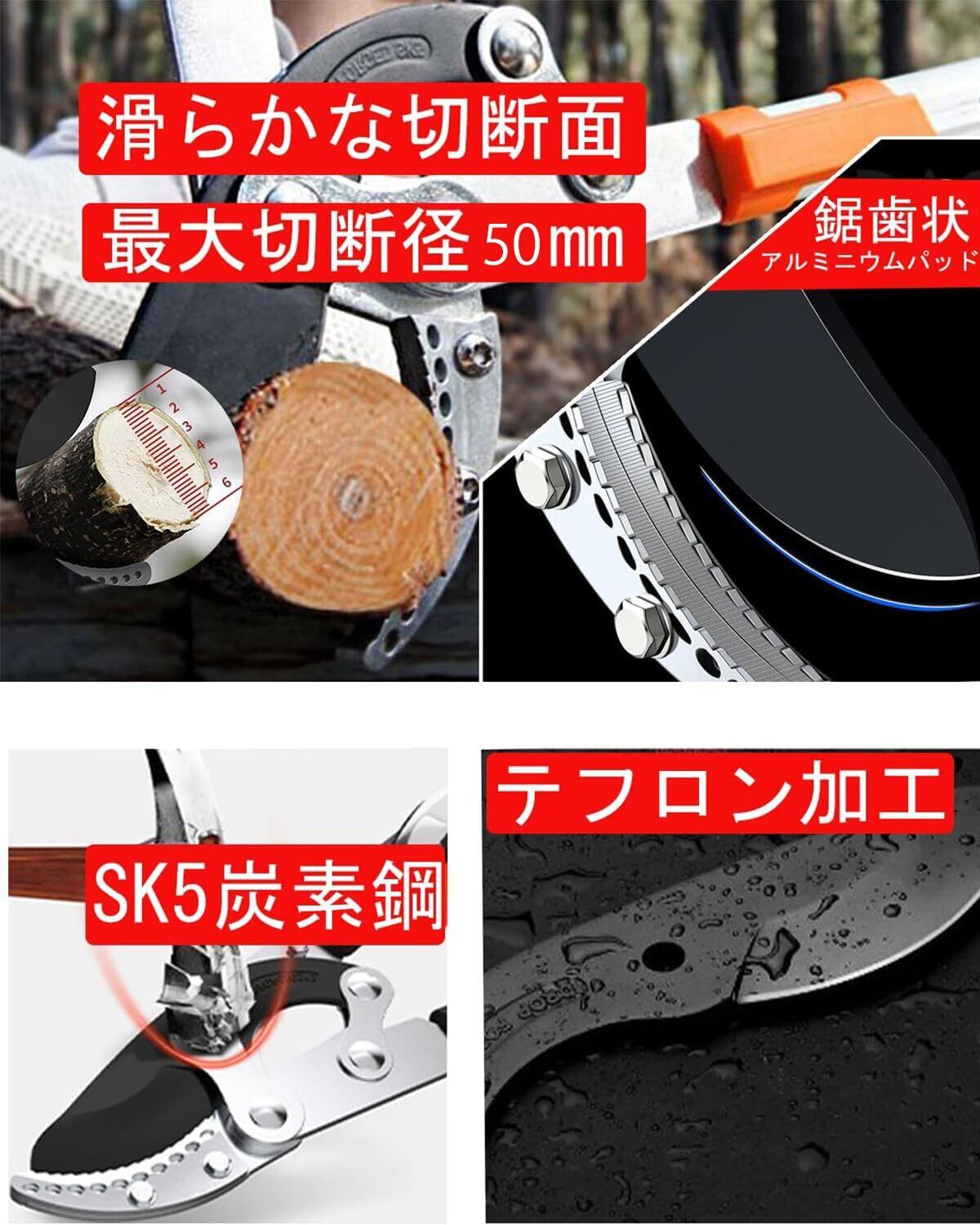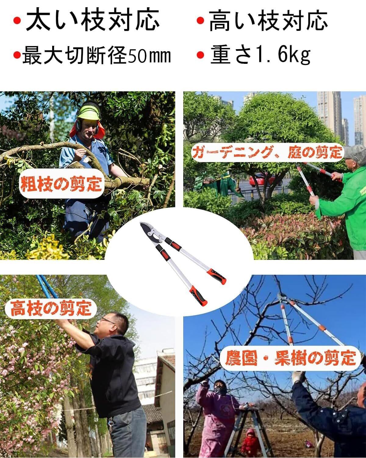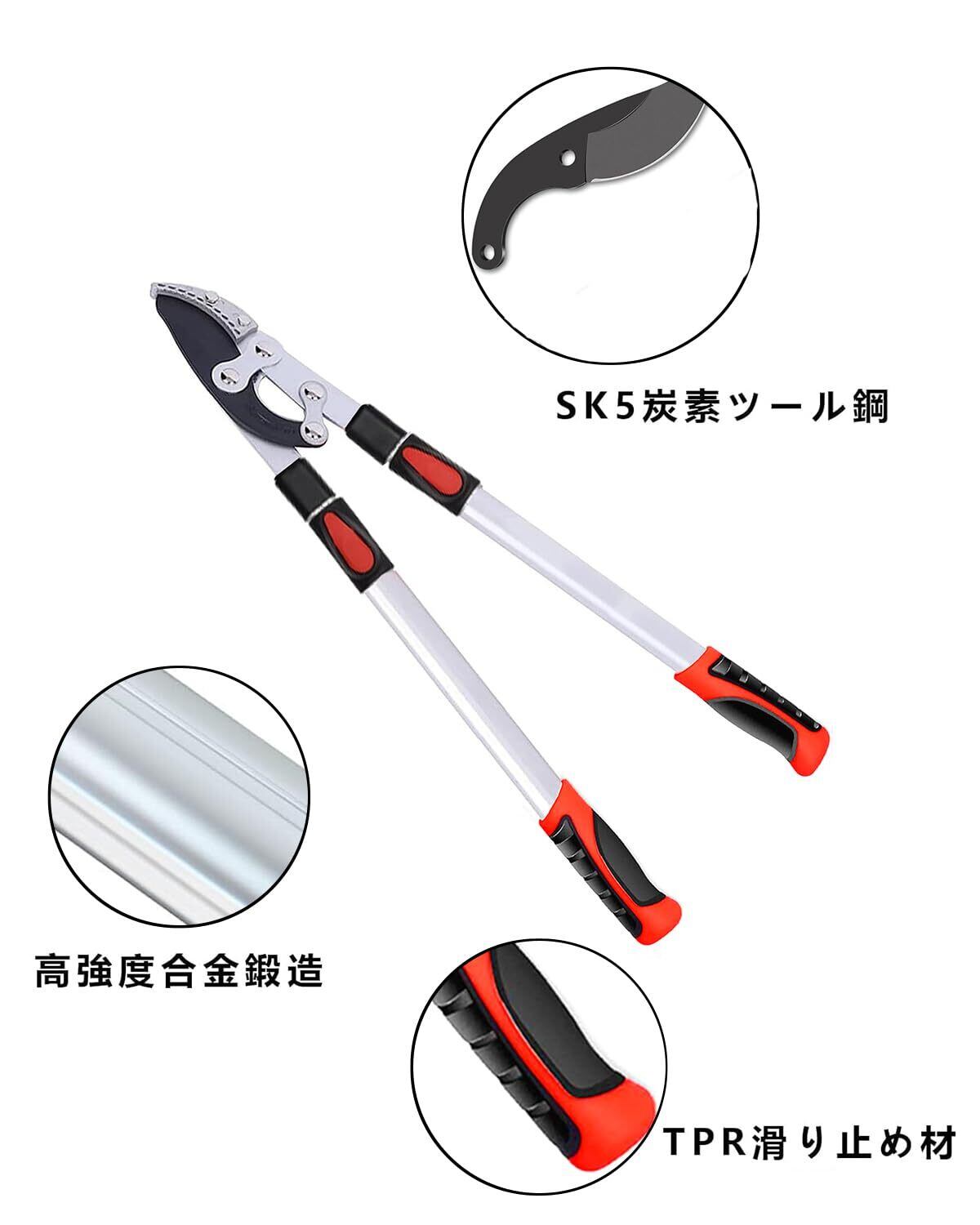 枝切りばさみ えだきりばさみ 5段調節式68-104cm SK-5スチール刃 滑り止めハンドル えだきりはさみ 枝切りバサミ 枝切り鋏 良い切れ味 生木最大切断径 50 mm 耐久性 庭園 街路樹 農園 果樹 1枚替刃付き