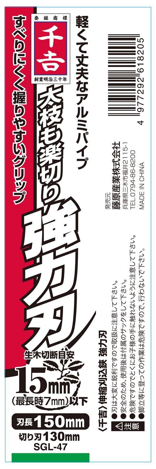 千吉(Senkichi) 伸縮刈込鋏 強力刃 全長約660~1000mm 生木切断目安15mm 枝滑り防止のギザ刃付 SGL-47