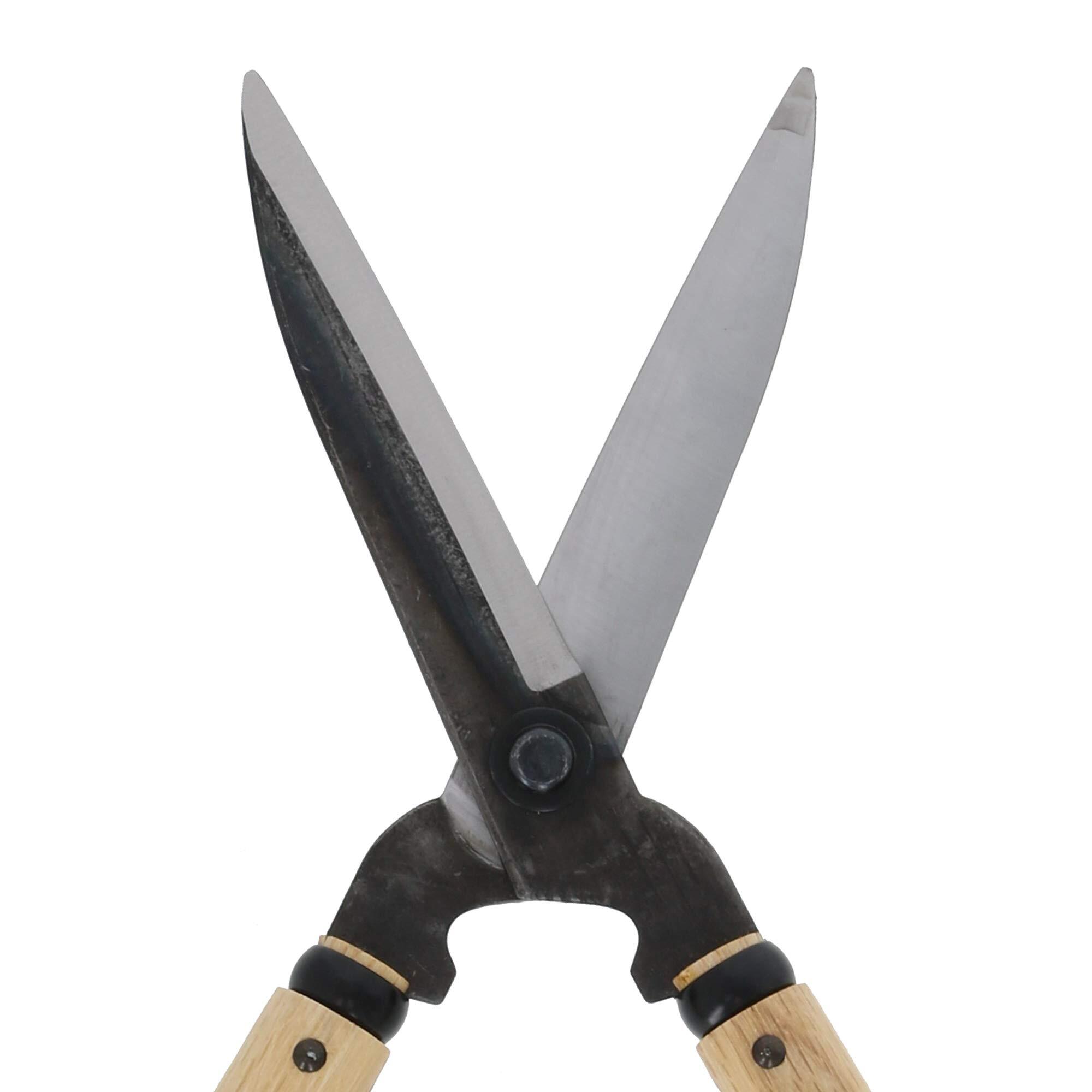 ●切れ味の良い刈込鋏で刈りこんだ場合木を痛めない。柄の中ほどを持って使うとバランスがとれる。片方の柄を固定し(静刃)、もう片方の柄を動かす(動刃)と、きれいに刈れる。又、丸く刈り込む場合は鋏を裏返しに使う