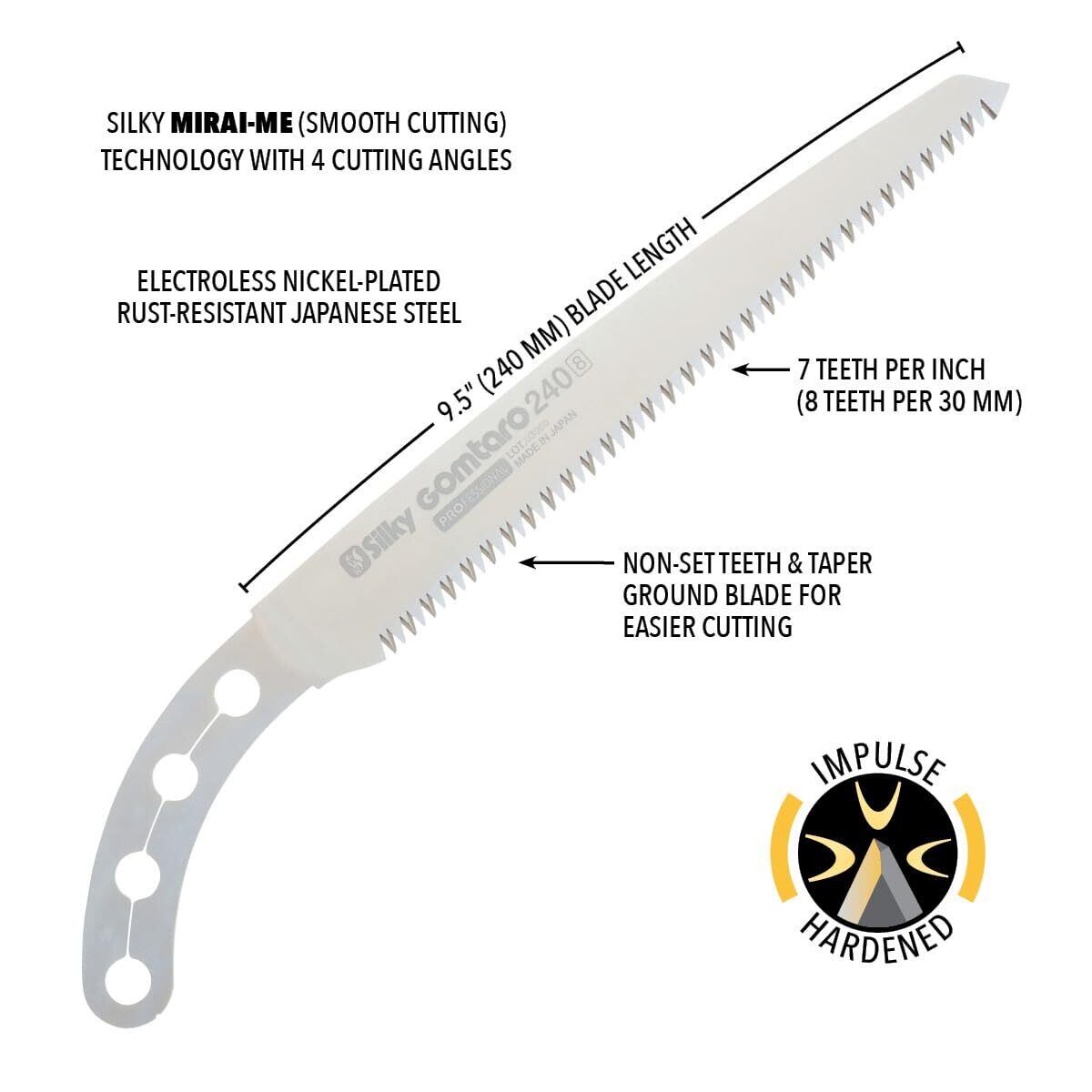 刃渡り240mm、目数8枚目/30mm、切り幅1.3mm、重量75g