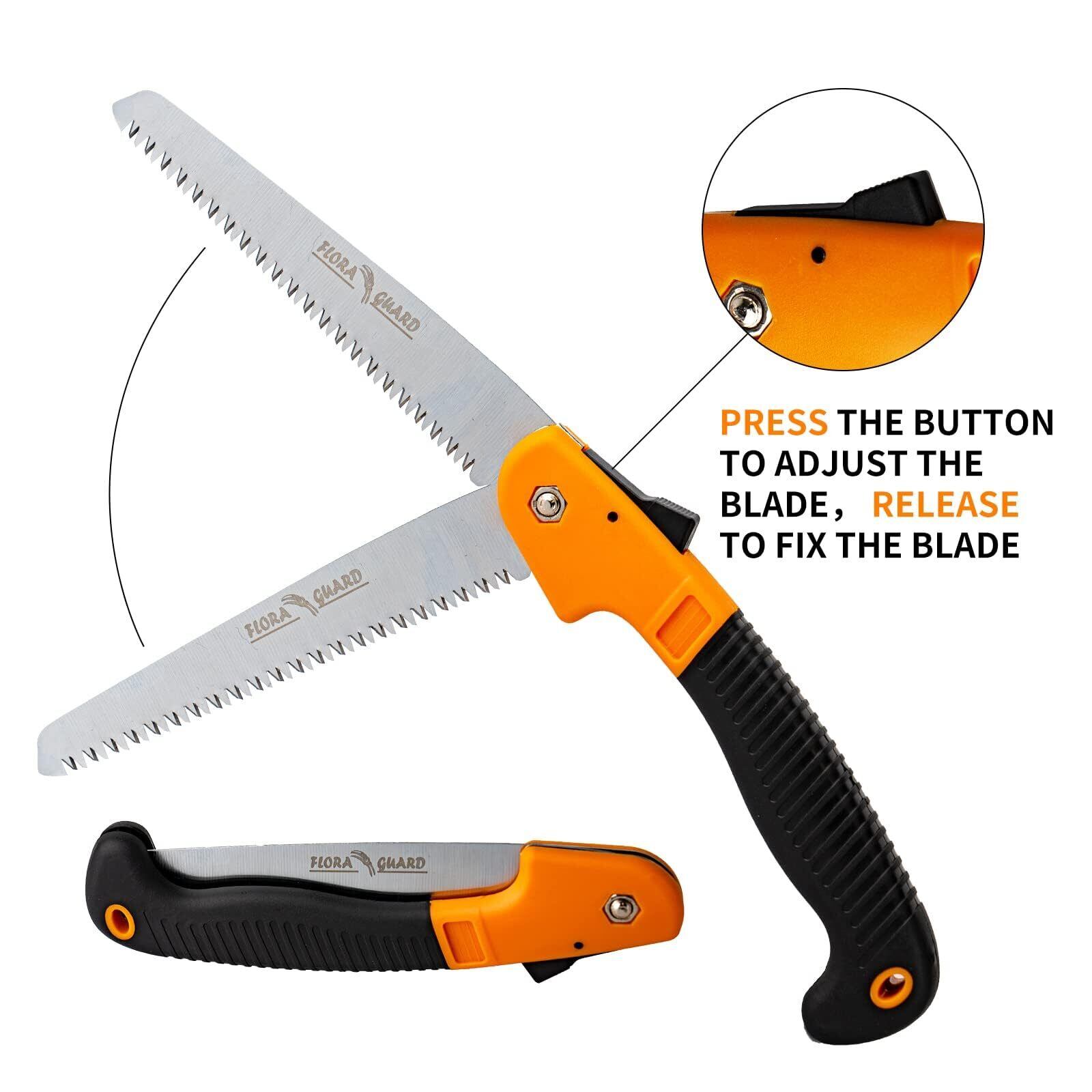 【限定セール】FLORA GUARD 195mm ノコギリ - 剪定鋸 のこぎり キャンプ 多目的園芸用のこぎり 安全ロック付きの剪定のこぎり(グリーン)
