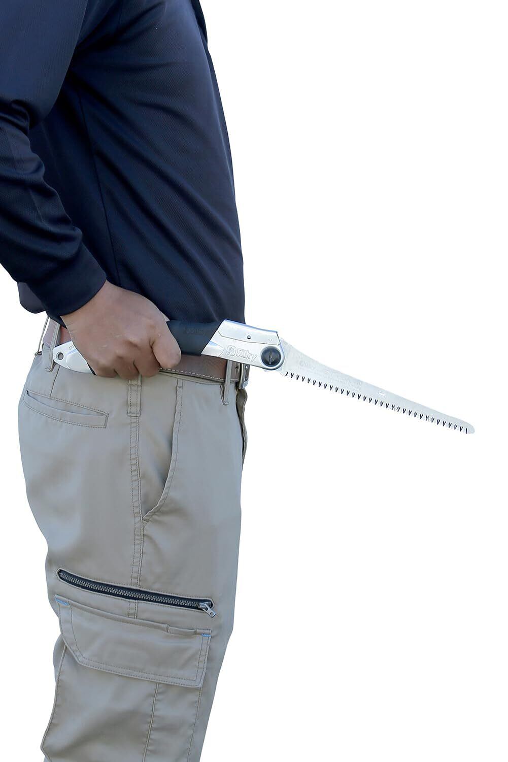 軽量で疲れにくくカーブハンドルにより軽い力で切りやすい剪定に最適な折込鋸