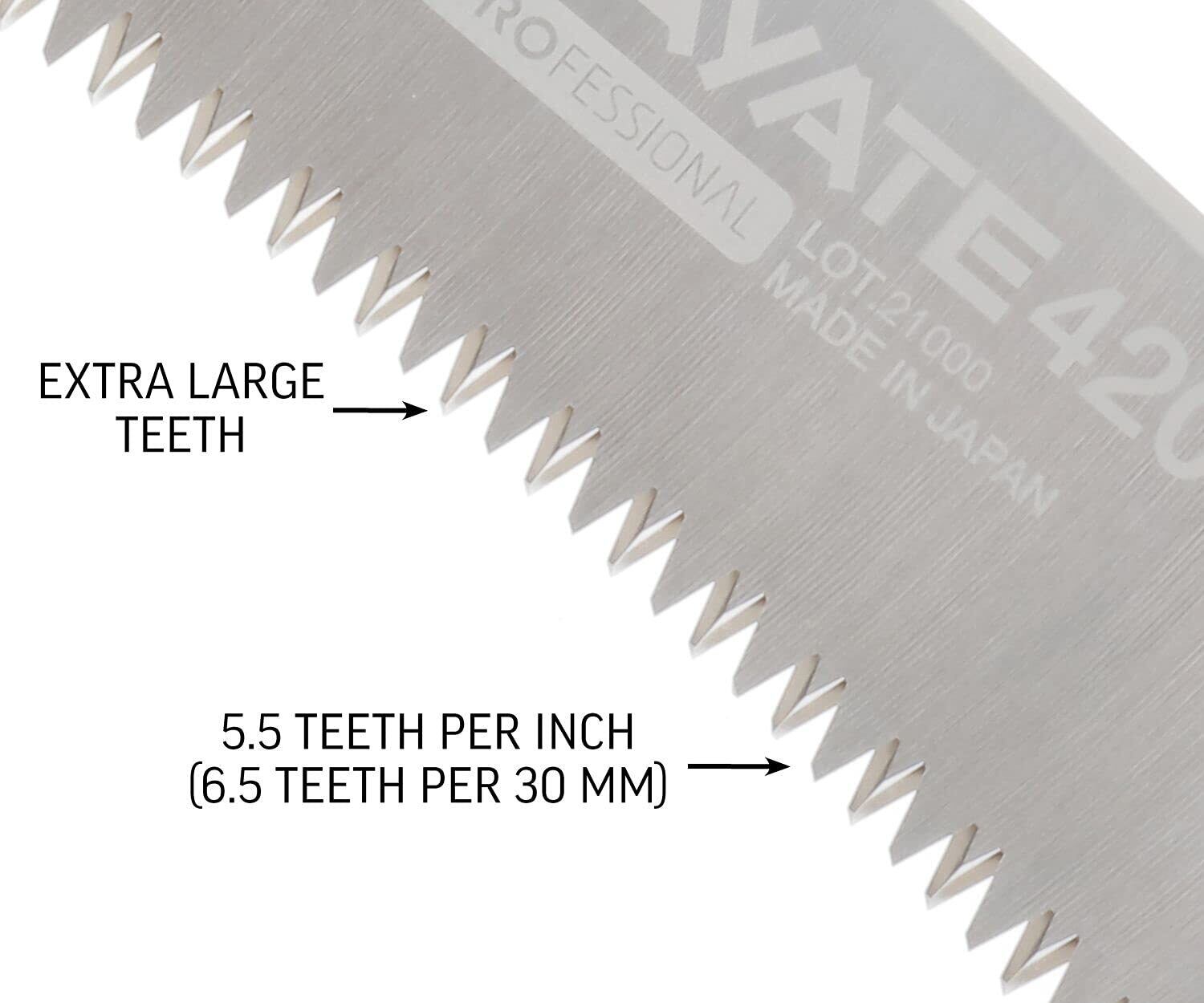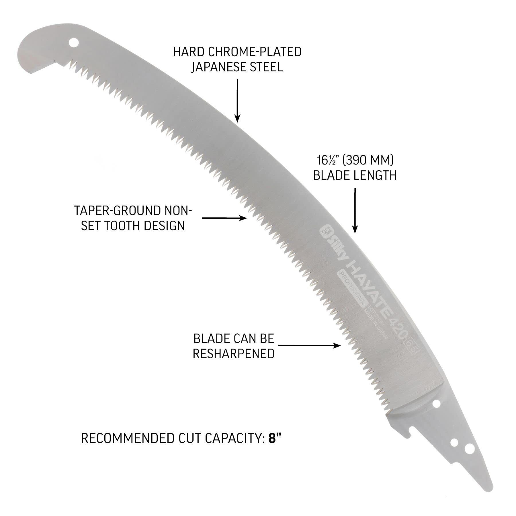 刃渡り420mm、目数6.5枚目/30mm、切り幅1.75mm、重量220g