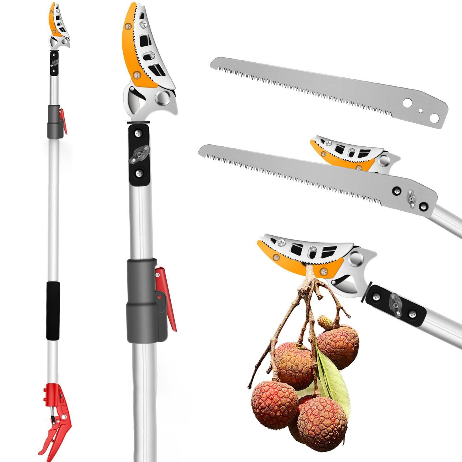 UYTON 高枝切鋏 枝切り 採果 高枝切り二段式に伸縮できサイズ 136cm~220cm バサミ 歯車助力 安全安心 剪定鋏 高枝 ハサミ 剪定 太枝 鋸付き ノコ刃 軽量 切れ味 テフロン塗装 Sk5合金鋼 アルミ合金 ABS 園芸用品 樹 庭 木 花園 果樹 林業 切れ味 強力型(2段式に伸縮、220cm+専用鋸)