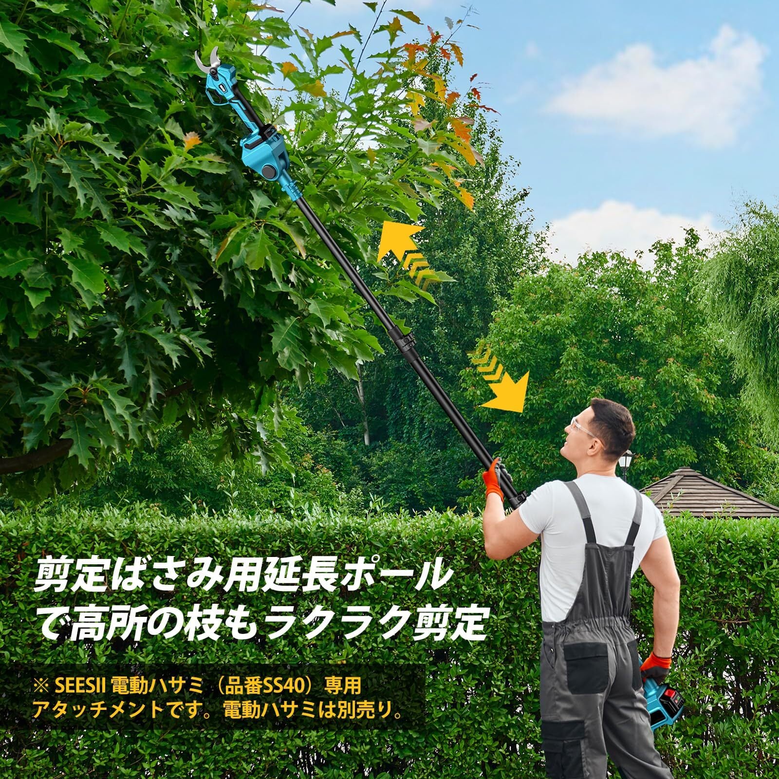 【SEESII 延長ポール(品番:SS80)】本製品はSEESII製の充電式剪定バサミおよびチェーンソーと互換性のある専用延長ポールです(※剪定バサミおよびチェーンソーは別売り)。※ご注意:本製品は市販されている3ピンプラグ式のチェーンソーおよび剪定バサミに対応しています。ご使用予定の機器との適合が不明な場合は、ご購入前に必ず当店までお問い合わせください。また、本延長ポールに装着可能なSEESII対応製品(ヘッジトリマー・チェーンソー・剪定バサミ)をお探しの方は、以下の商品コードでにて検索してください。「B0F8HQC3N4」「B0DPX7T115」「B0CW6361ZX」▼対応商品リンク:① https://www./gp/product/B0F8HQC3N4② https://www./gp/product/B0DPX7T115③ https://www./dp/B0CW6361ZX