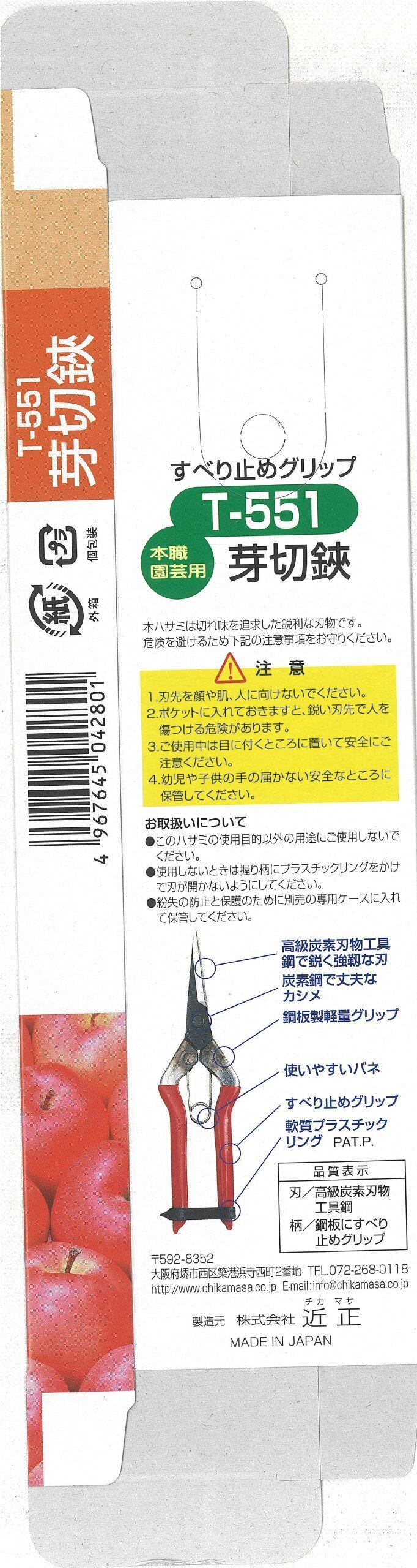 近正 芽切鋏 尖直長刃 箱入 T-551