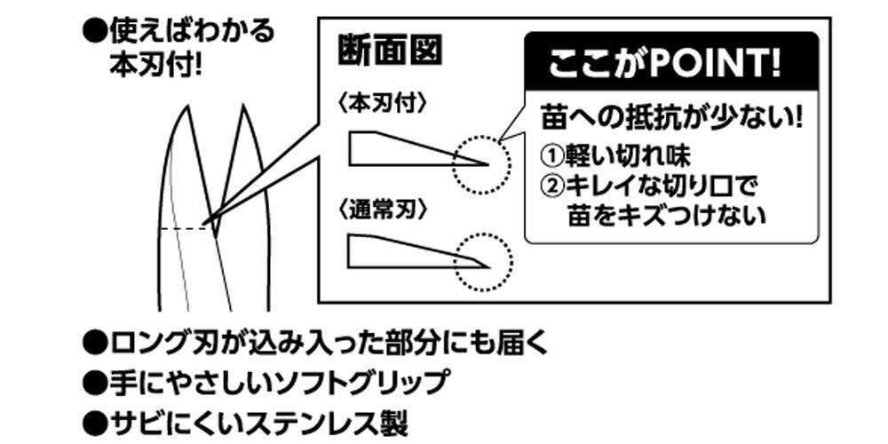 本刃付だから植物への抵抗が少ない! 軽い切れ味/キレイな切り口