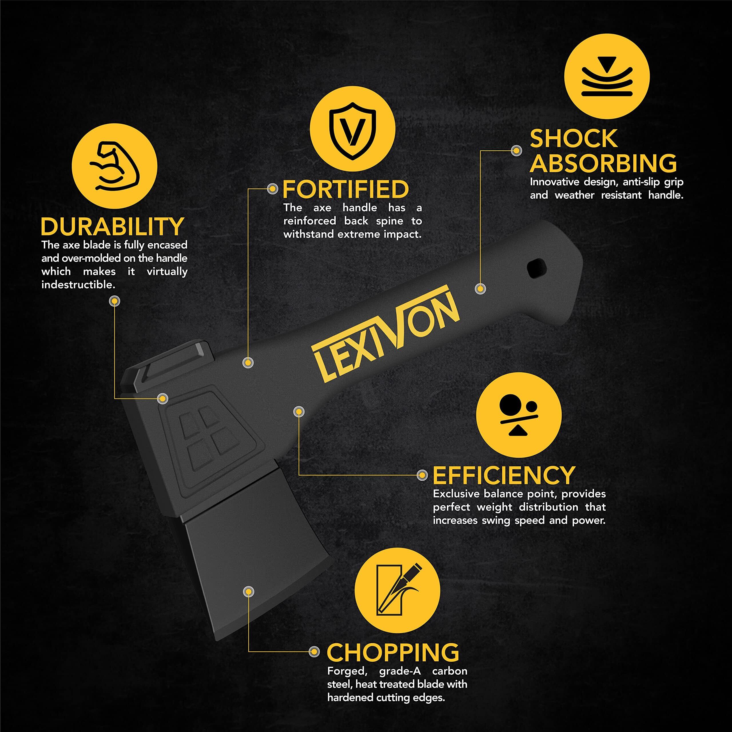 LEXIVON 斧・斧 キャンプ ・手斧、22.8cm (9インチ) 軽量ガラス繊維強化プラスチックのハンドル&人間工学に基づいたTPRグリップ、専用カバー付き、薪割りに大活躍(LX-V9)