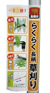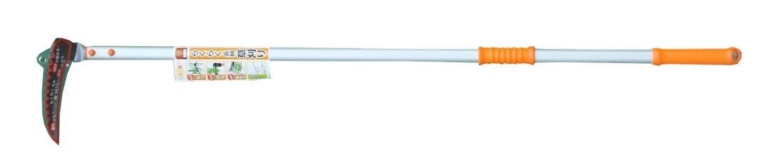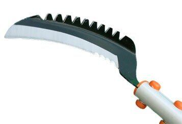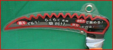直刃で刈る、波刃で払う、台形爪で刈った草をかき集める。