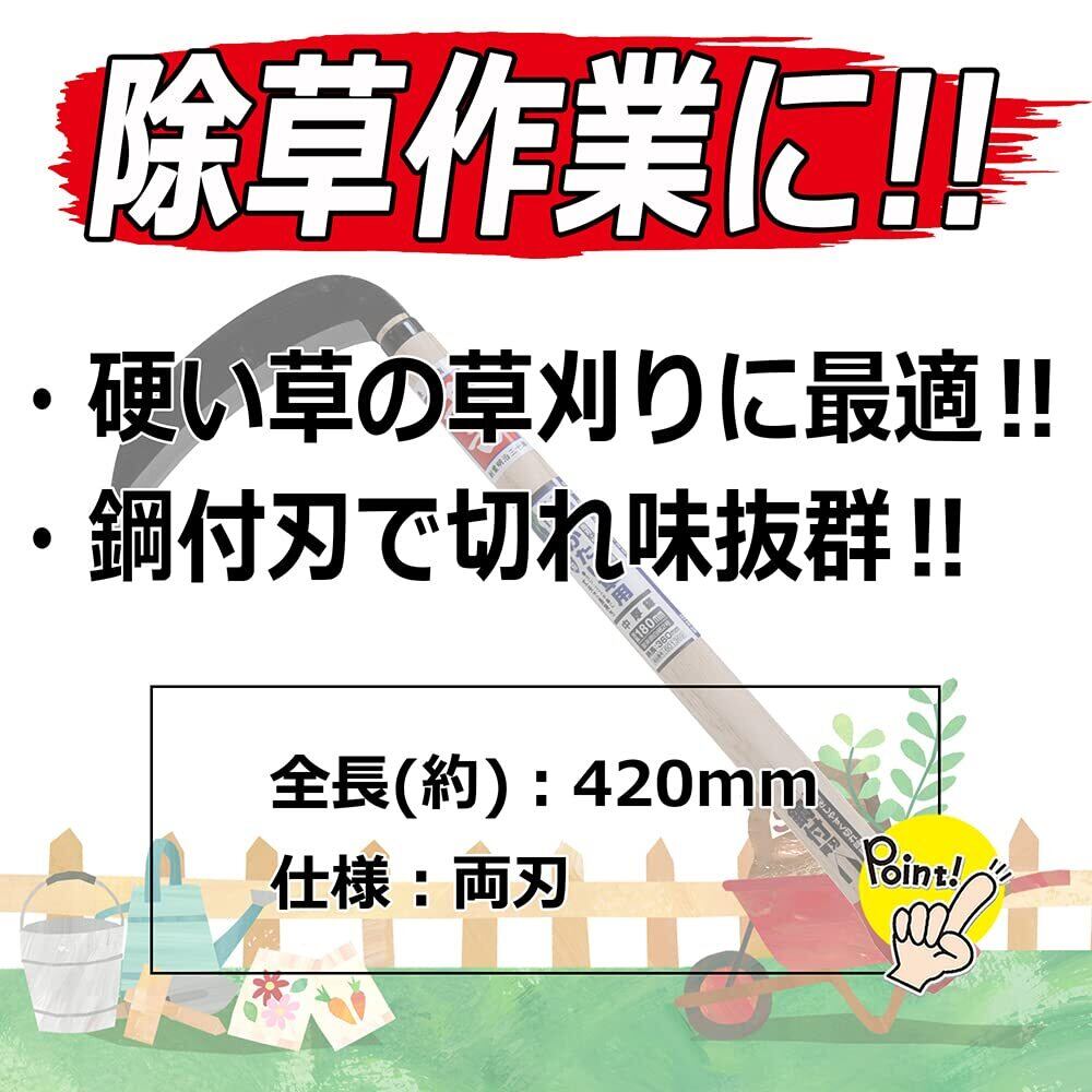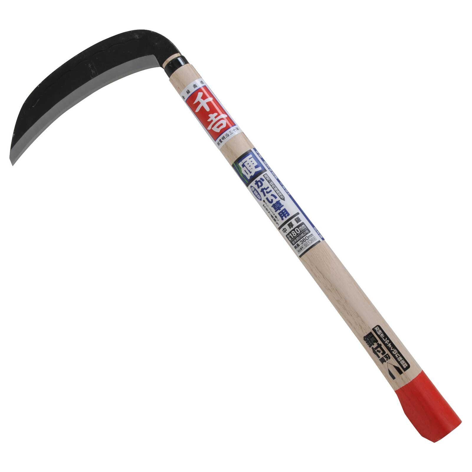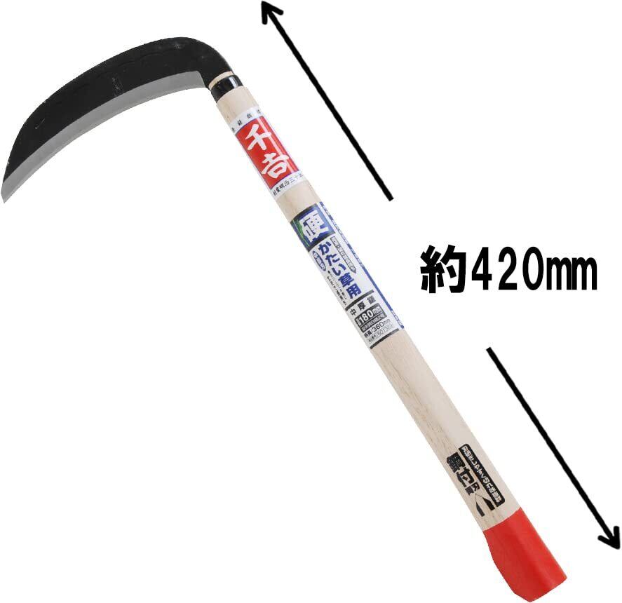 千吉 かま 両刃中厚鎌 刃長180mm 草刈り鎌 除草作業用 硬い草用 奥行2.5×高さ42×幅18cm