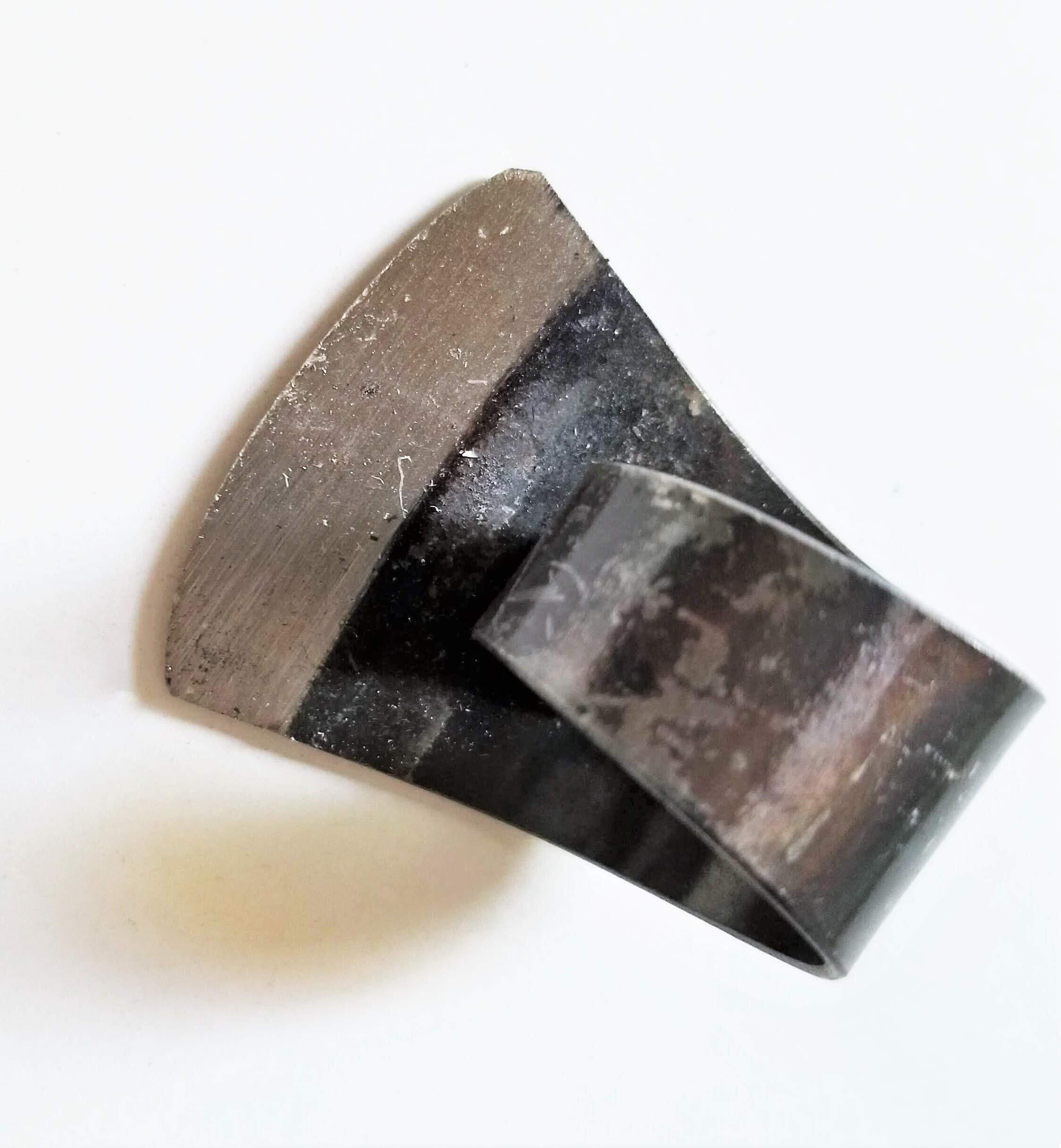 昔の桑爪です。 「収穫爪」としての幅広い用途に。 「菜ばな」摘みや「赤しそ」摘み「春菊」「モロヘイヤ」「つるむらさき」など、色々な植物の収穫に ご利用できまます。 フリーサイズなので ご自分の指の大きさに合わせて、軽く調整して、ペンチなどで、合わせてください。 また、右きき、左きき両用です。 慣れれば、手早く簡単に作業が出来ます。 片刃になっています。研ぎの出来る鍛造ですので 永くお使いいただけます。