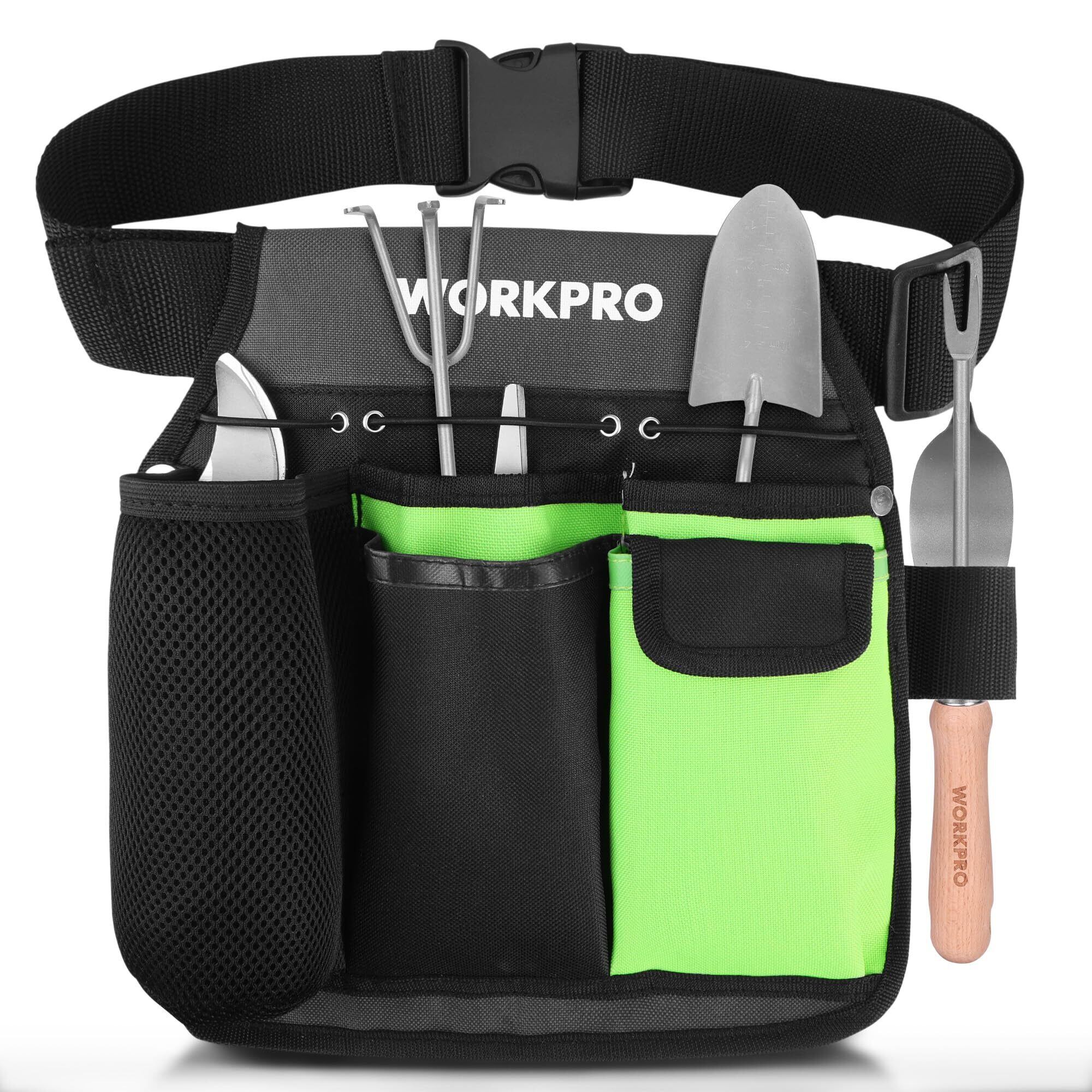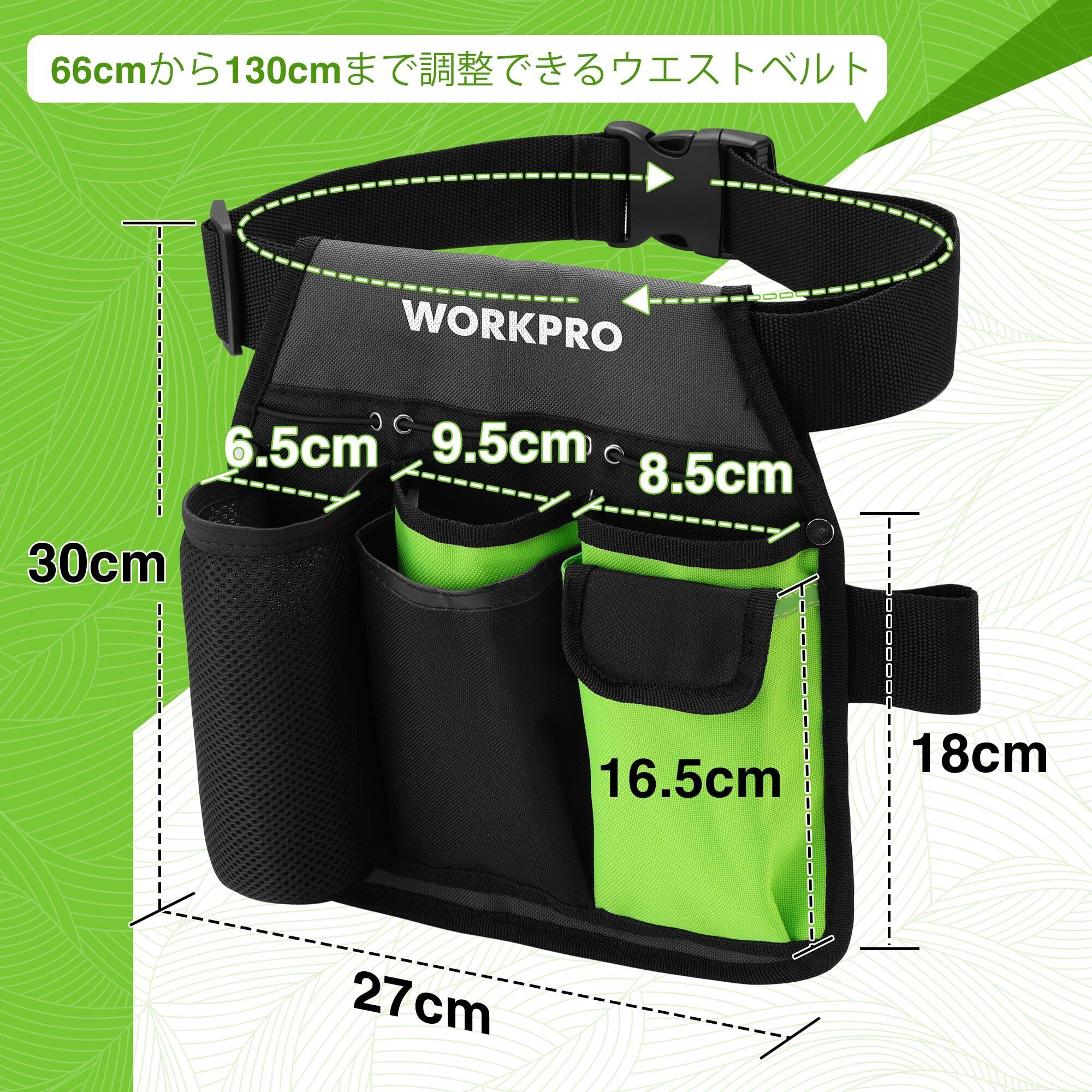 WORKPRO ガーデニングポーチ 園芸ポーチ 腰掛ポーチ 腰袋 600Dオックスフォード生地 多機能ポケット 剪定ばさみケース 園芸作業 大工 草取り 作業用 収納 持ち運び ベルト総長135cm サイズ調整可能 園芸ツール別売り
