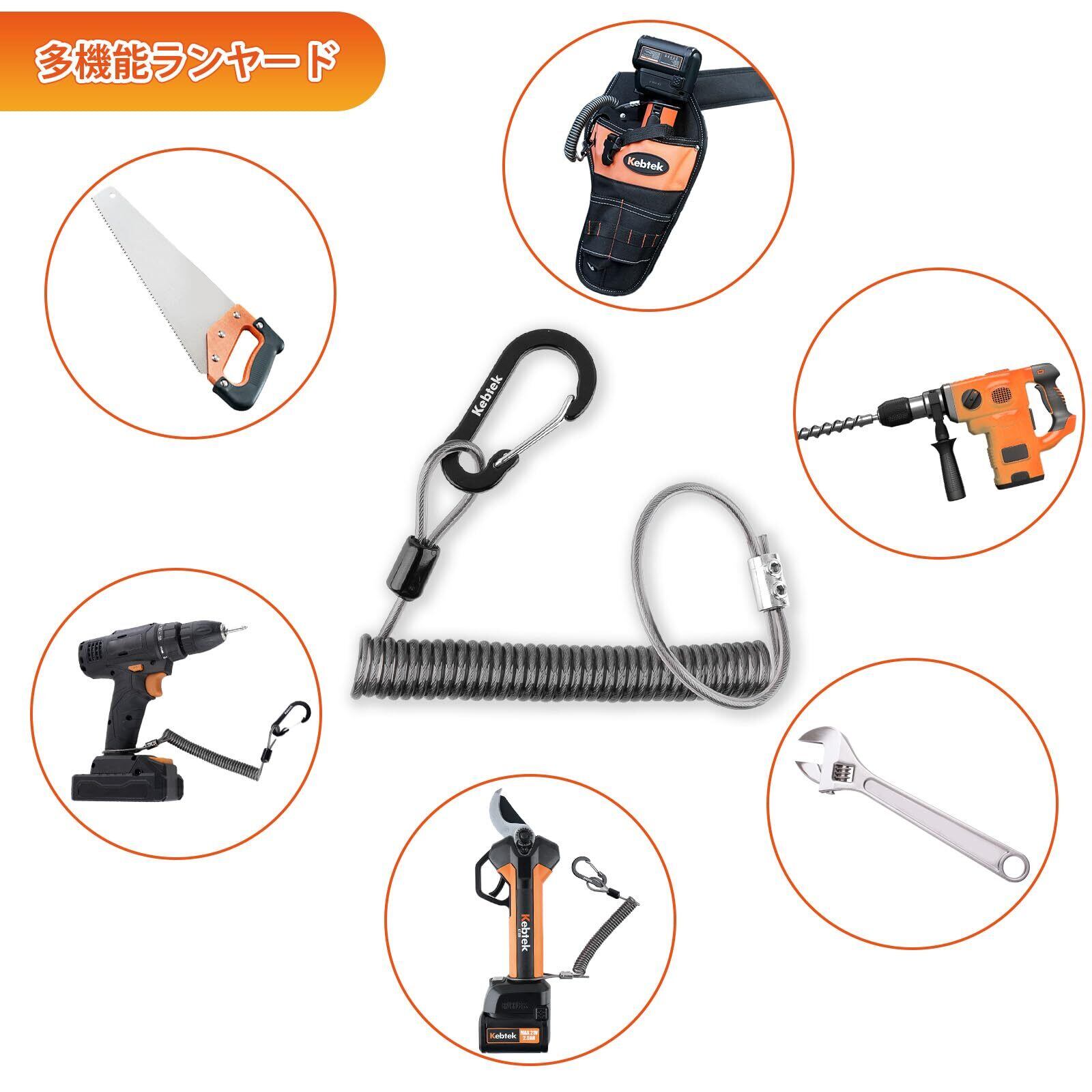 【在庫限り】[Kebtek]スパイラルコード ワイヤー内蔵 コイルストラップ 伸び1.7m 耐荷重25kg 落下防止 セーフティコード バンジーコード ランヤード 電動工具掛けケーブル あんぜん対策 アルミニウム製ロック 電気工事 高所安全作業工具