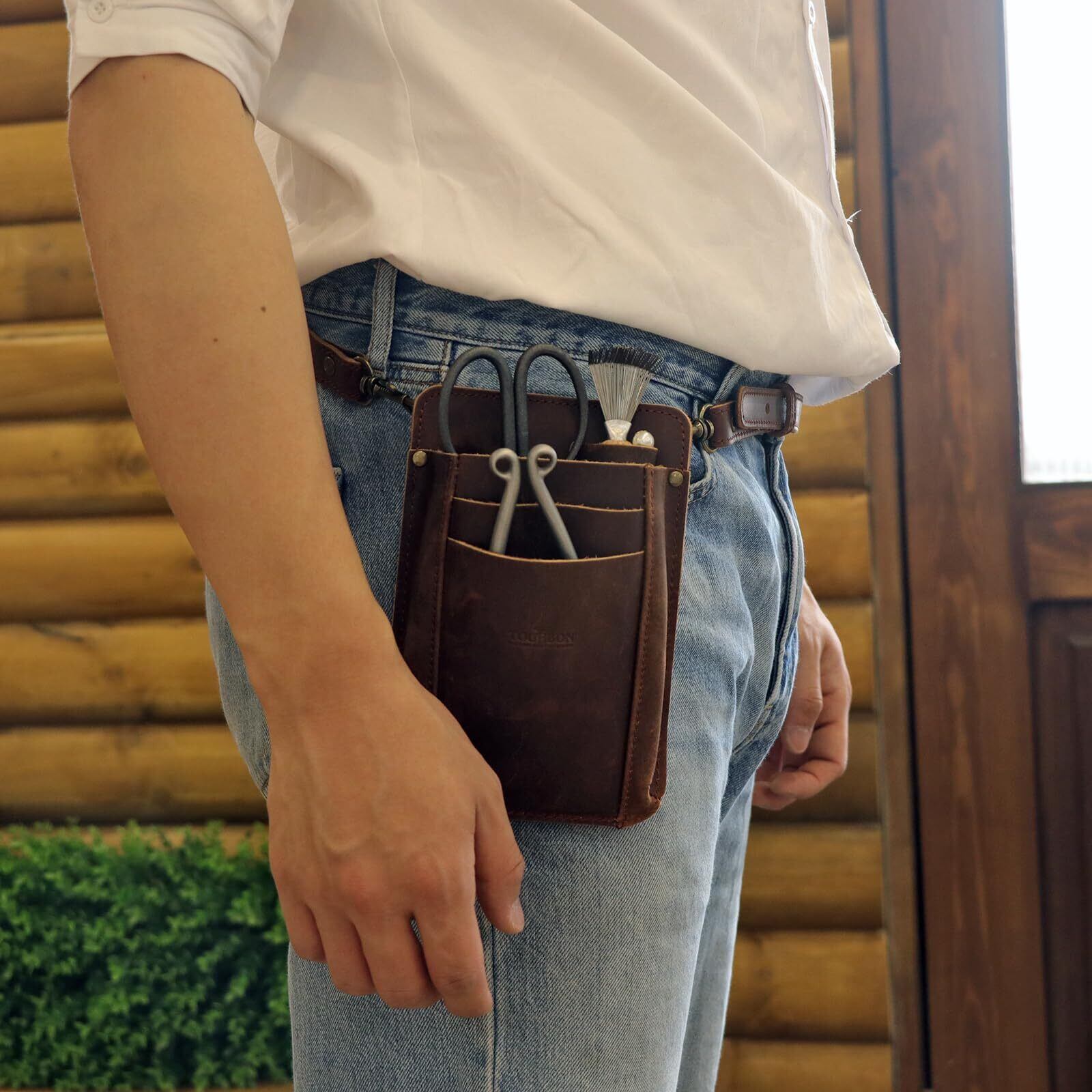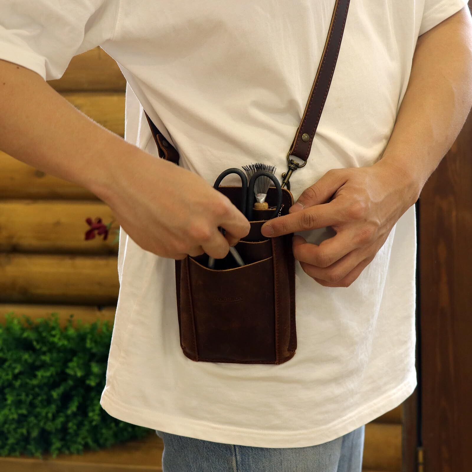 TOURBON ガーデニングポーチ 剪定鋏ポーチ 革 シザーケース バッグ 園芸 花屋 ウエストポーチ ショルダーストラップ付き