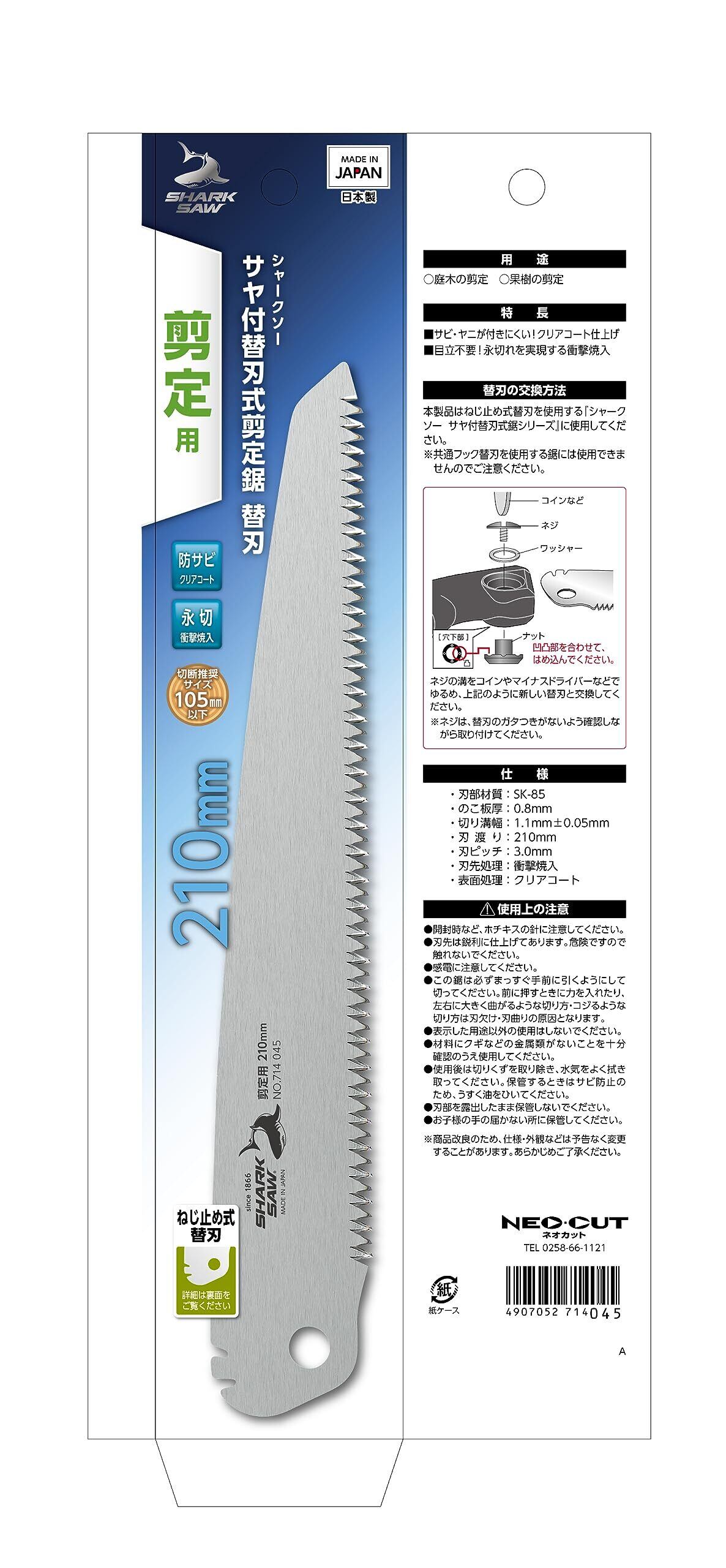 髙儀(Takagi) シャークソー サヤ付 替刃式 剪定鋸 替刃 210mm 日本製 のこぎり ノコギリ 鋸 片刃 園芸 庭木 果樹 防サビ サビ·ヤニが付きにくい クリアコート仕上げ 目立不要 永切れを実現する衝撃焼入